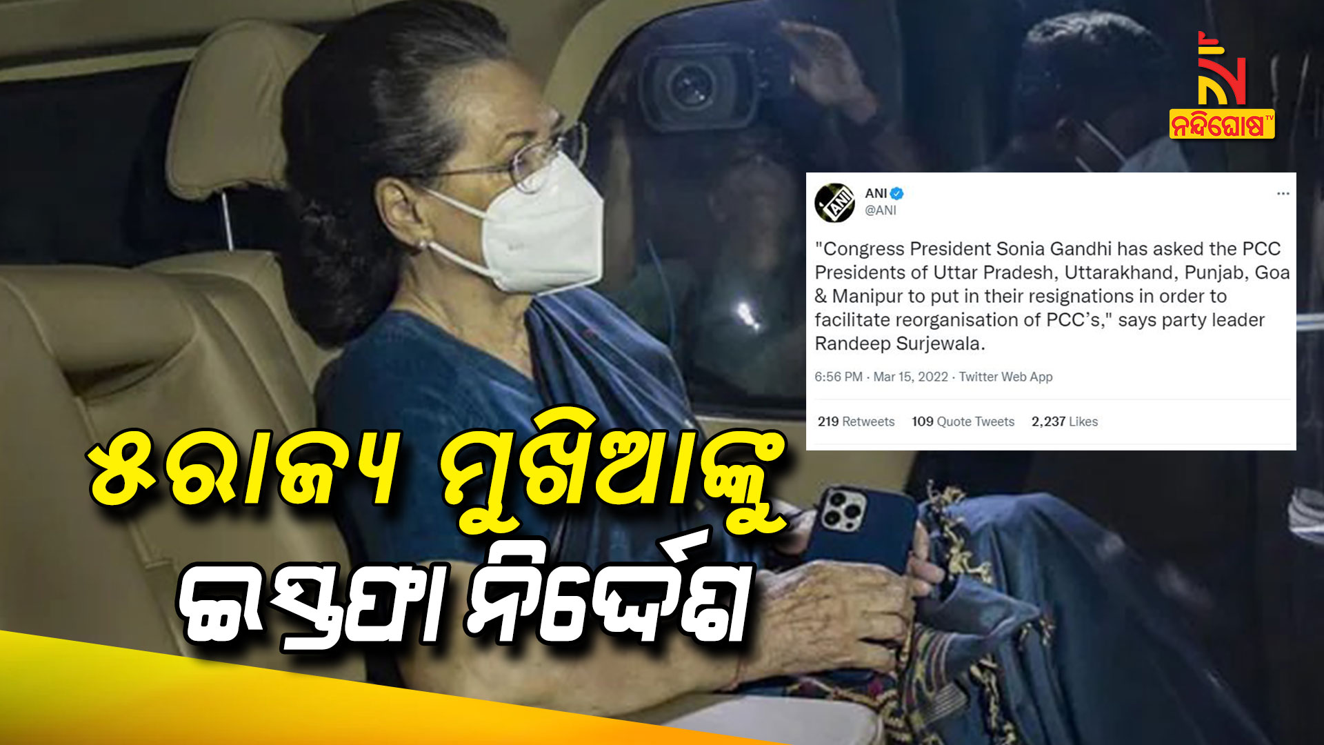 ନୂଆଦିଲ୍ଲୀ: ୫ ରାଜ୍ୟ ବିଧାନସଭା ନିର୍ବାଚନରେ କଂଗ୍ରେସର ଶୋଚନୀୟ ପରାଜୟରେ ଉତ୍କ୍ଷିପ୍ତ କଂଗ୍ରେସ ହାଇକମାଣ୍ଡ । ଉତ୍ତରପ୍ରଦେଶ, ଉତ୍ତରାଖଣ୍ଡ, ପଞ୍ଜାବ, ଗୋଆ ଓ ମଣିପୁରର କଂଗ୍ରେସ ମୁଖିଆମାନଙ୍କୁ ଇସ୍ତଫା ଦେବା ଲାଗି ନିର୍ଦ୍ଦେଶ ଦେଇଛନ୍ତି ଏଆଇସିସି ସଭାନେତ୍ରୀ ସୋନିଆ ଗାନ୍ଧି । ଉତ୍ତରପ୍ରଦେଶ ପିସିସି ସଭାପତି ଅଜୟ କୁମାର ଲାଲ୍ଲୁ, ଉତ୍ତରାଖଣ୍ଡ ପିସିସି ସଭାପତି ଗଣେଶ ଗୋଡିୟାଲ, ପଞ୍ଜାବ ପିସିସି ସଭାପତି ନବଜୋତ ସିଂ ସିଦ୍ଧୁ, ଗୋଆ ପିସିସି ସଭାପତି ଗିରୀଶ ଚୋଡାନକର, ମଣିପୁର ପିସିସି ସଭାପତ ଏନ. ଲୋକେନ ସିଂଙ୍କୁ ଇସ୍ତଫା ନିର୍ଦ୍ଦେଶ ଦିଆଯାଇଛି ।