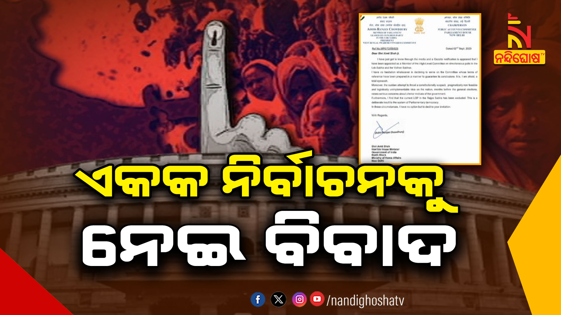 ନୂଆଦିଲ୍ଲୀ: ଓ୍ବାନ ନେସନ ଓ୍ବାନ ଇଲେକସନ ଲାଗି ଗଠିତ କମିଟିକୁ ନେଇ ବିବାଦ । କମିଟିର ସଦସ୍ୟ ହେବାକୁ ମନା କଲେ କଂଗ୍ରେସ ନେତା ଅଧୀର ରଞ୍ଜନ ଚୌଧୁରୀ । କହିଲେ- କମିଟି ନାମକୁ ମାତ୍ର ଗଠିତ ହୋଇଛି ।