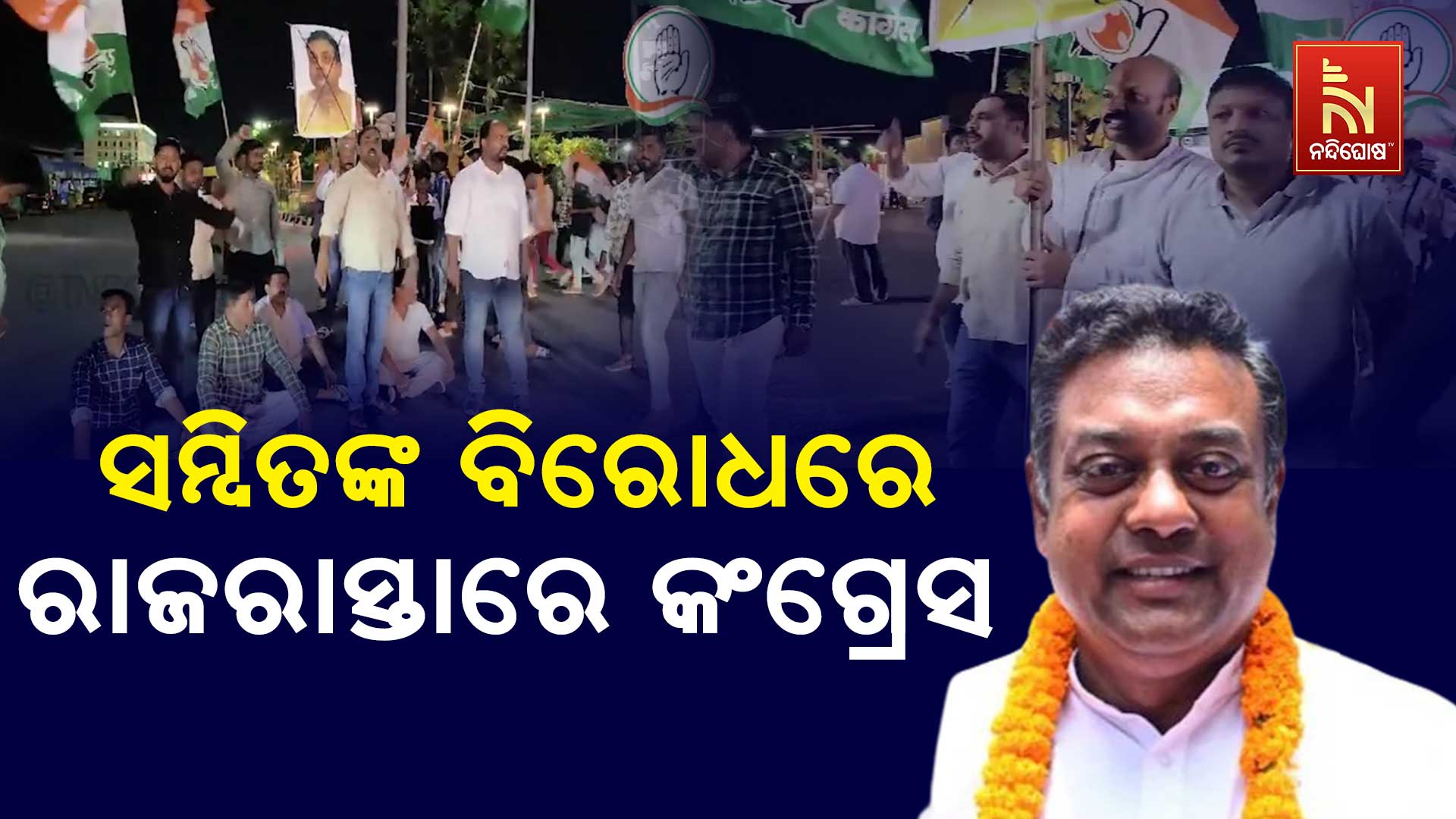 ସମ୍ବିତ ପାତ୍ରଙ୍କ ବିରୋଧରେ ରାଜରାସ୍ତାରେ ପ୍ରତିବାଦ କଲେ କଂଗ୍ରେସ କର୍ମୀ