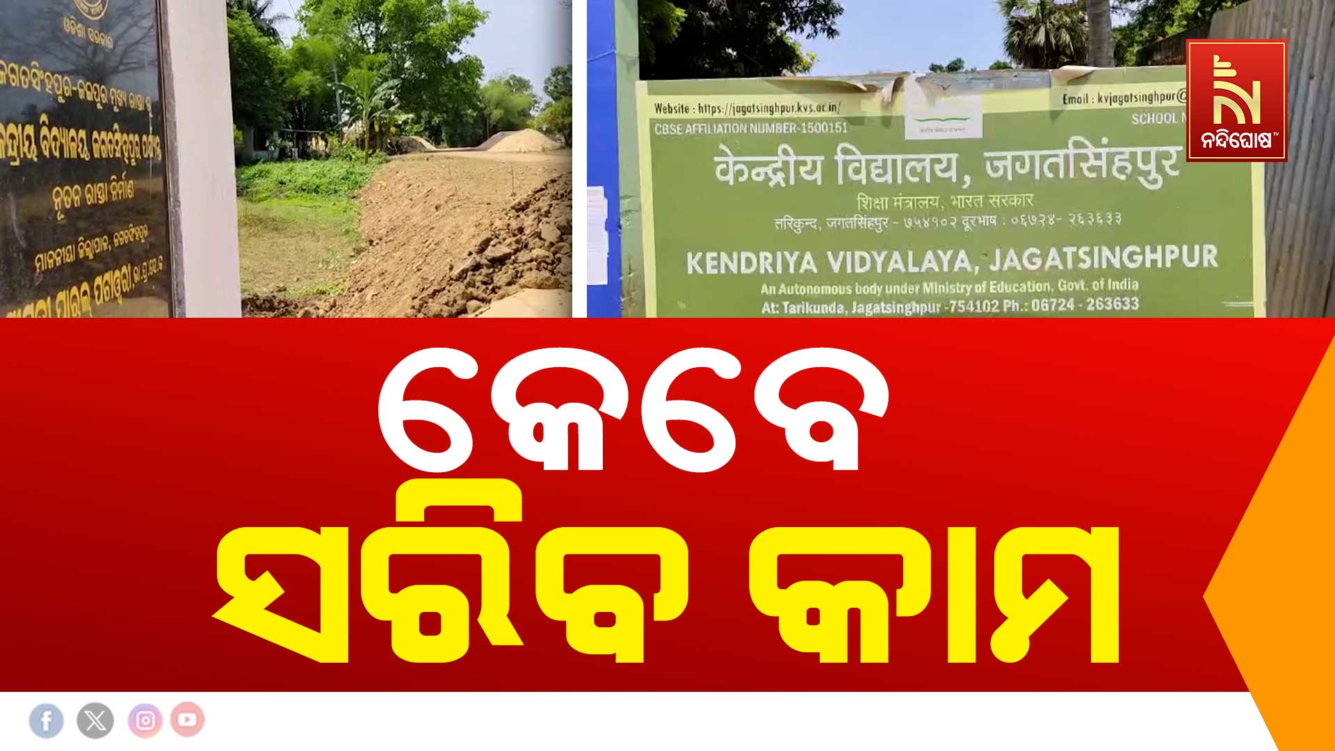 ଜଗତସିଂହପୁର: ସାମ୍ନାକୁ ଆସିଲା କେନ୍ଦ୍ର ସରକାରଙ୍କ ଶିକ୍ଷାବିଭାଗର ଦାୟିତ୍ଵହୀନତା। ଜଗତସିଂହପୁରରେ ଅଧାରେ ଅଟକିଛି କେନ୍ଦ୍ରୀୟ ସ୍କୁଲ ନିର୍ମାଣ କାମ। ମନ୍ଥର ଗତିରେ ଚାଲିଛି ଗୃହ ନିର୍ମାଣ। ଅସ୍ଥାୟୀ ଭାବେ ଏକ ସରକାରୀ ହାଇସ୍କୁଲରେ, କେନ୍ଦ୍ରୀୟ ବିଦ୍ୟାଳୟ ଛାତ୍ରଛାତ୍ରୀଙ୍କ ଚାଲିଛି ପାଠପଢା। ଯାହାକୁ ନେଇ ଅସନ୍ତୋଷ ପ୍ରକାଶ କରିଛନ୍ତି ଅଭିଭାବକ ଓ ଛାତ୍ରଛାତ୍ରୀ।