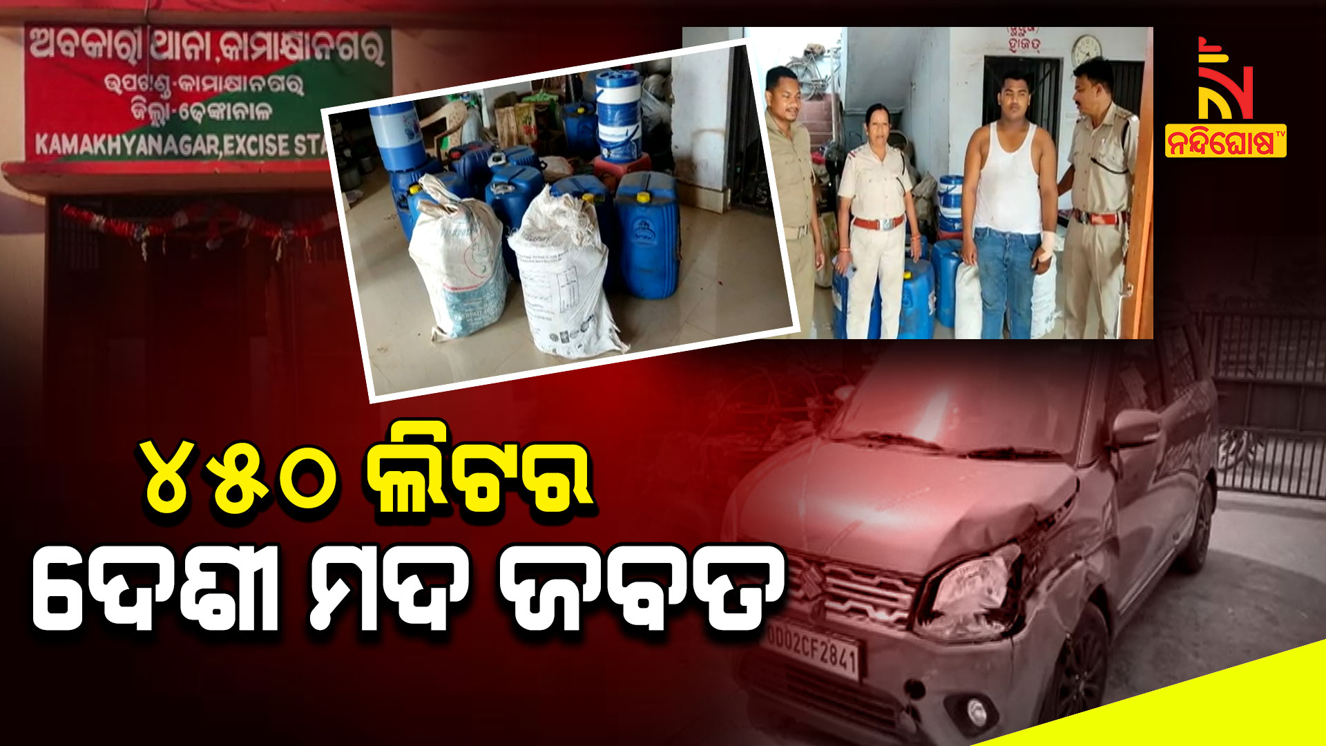୪ଶହ ୫୦ ଲିଟର ଦେଶୀ ମଦ ସହ ଗାଡି ଜବତ, ଜଣେ ଗିରଫ