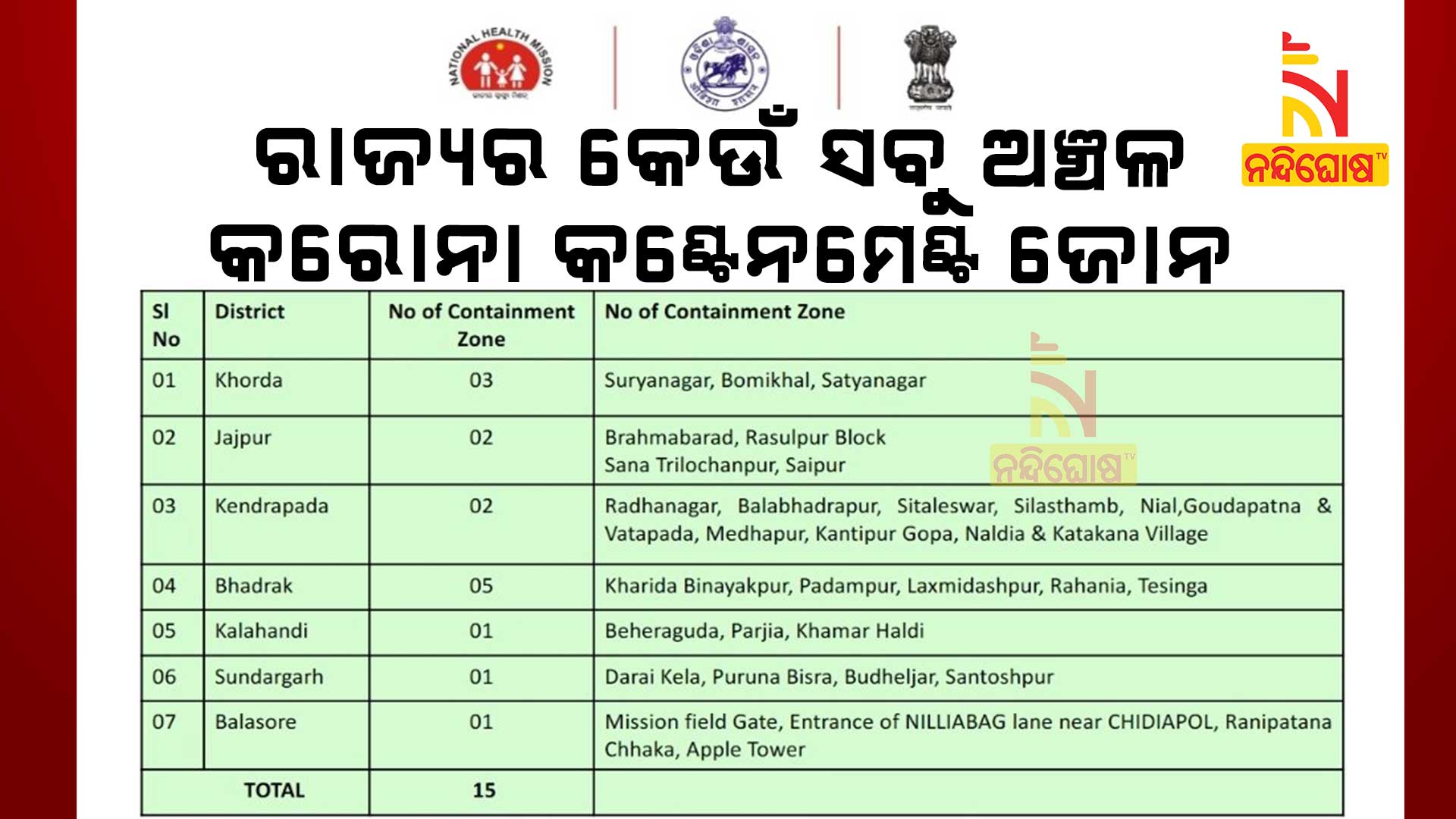 କଣ୍ଟେନମେଣ୍ଟ ଜୋନରେ କାହାରିକୁ ପ୍ରବେଶ ଅନୁମତି ନଥିବା ବେଳେ କେହି ବି ବାହାରକୁ ଯାଇପାରୁନାହାଁନ୍ତି । ସ୍ଥାନୀୟ ପ୍ରଶାସନ ଲୋକଙ୍କ ପାଖରେ ସମସ୍ତ ଅତ୍ୟାବଶ୍ୟକୀୟ ସାମଗ୍ରୀ ପହଞ୍ଚାଉଛି । ସ୍ୱାସ୍ଥ୍ୟ କର୍ମୀ ଘରେ ଘରେ ପହଞ୍ଚି ନମୁନା ପରୀକ୍ଷା କରୁଛନ୍ତି । ନଜର ପକାନ୍ତୁ କେଉଁ ଜିଲ୍ଲାରେ କେତେ ରହିଛି ସଂକ୍ରମିତଙ୍କ ସଂଖ୍ୟା, କେଉଁ ସବୁ ଅଞ୍ଚଳ କଣ୍ଟେନମେଣ୍ଟ ଜୋନ୍ ଭାବେ ଘୋଷିତ ହୋଇଛି ।