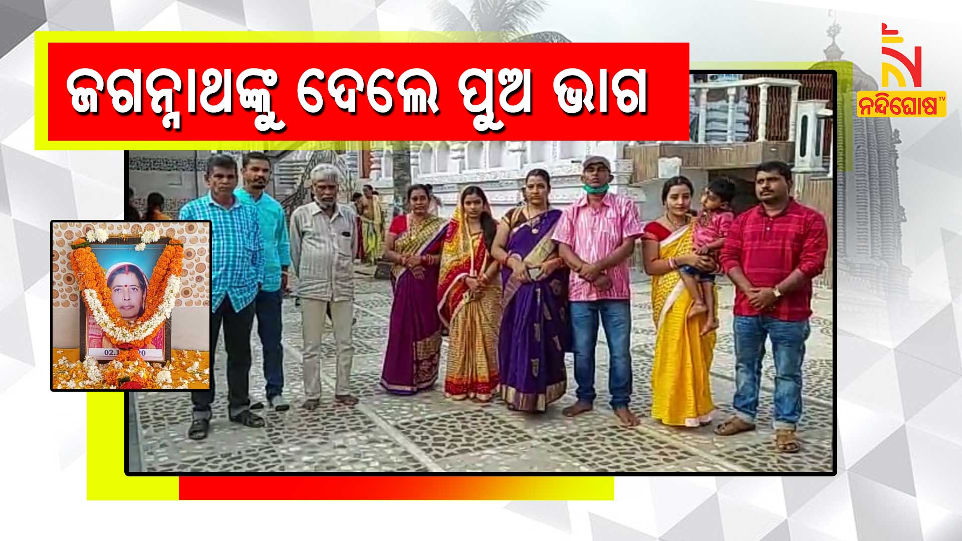 ବୈଜନ୍ତିମାଳା ସାହୁଙ୍କର ଚଳିତ ମାସ ୨ ତାରିଖ ଦିନ ପରଲୋକ ଘଟିଥିଲା । ବୈଜନ୍ତି ମାଳାଙ୍କ ସ୍ୱାମୀ ଭବାନୀ ସାହୁ ମଧ୍ୟ ରୋଗାଗ୍ରସ୍ତ ହୋଇ ଶଯ୍ୟାଶାୟୀ ଅବସ୍ଥାରେ ପଡିରହିଛନ୍ତି । ଭବାନୀ ସାହୁ ଓ ବୈଜୟନ୍ତି ସାହୁଙ୍କ ୩ଟି ଝିଅ ପୁଷ୍ପାଞ୍ଜଳି ସାହୁ, ଗୀତାଞ୍ଜଳି ଶତପଥୀ, ଶ୍ରଦ୍ଧାଞ୍ଜଳି ପଣ୍ଡାଙ୍କ ବାହାଘର ଦାଇତ୍ୱ ସବୁ ସମ୍ପନ୍ନ କରିସାରିଛନ୍ତି କିନ୍ତୁ ବୈଜୟନ୍ତୀମାଳାଙ୍କ ଗୋଟିଏ ମଧ୍ୟ ପୁଅ ନଥିବା ହେତୁ ସେ ପ୍ରଭୁ ଜଗନ୍ନାଥଙ୍କୁ ପୁଅ ଭାବେ ଗ୍ରହଣ କରି ଜଗନ୍ନାଥଙ୍କୁ ଭକ୍ତି ଓ ଶ୍ରଦ୍ଧା କରୁଥିଲେ ।