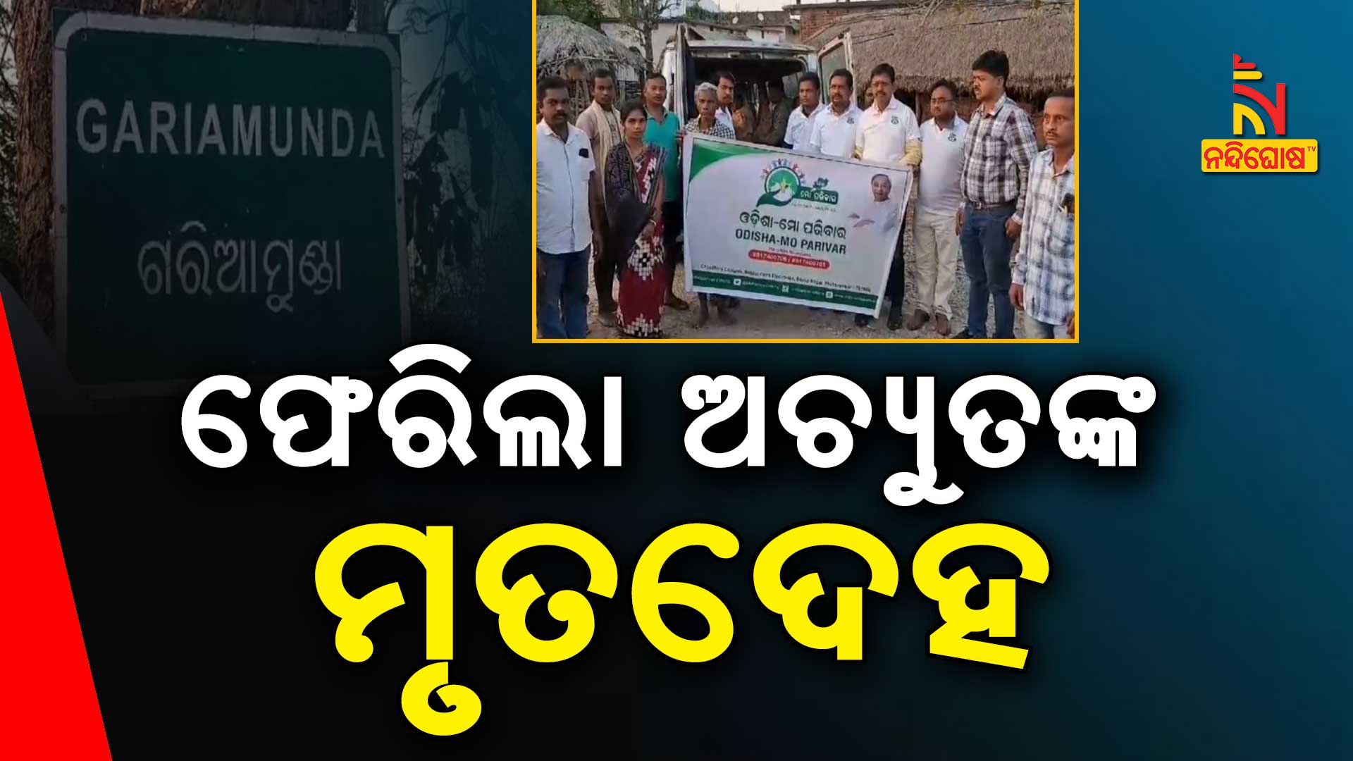 ଘଟଣା ସୁବର୍ଣ୍ଣପୁର ଜିଲ୍ଲା ସୁବଳୟା ଥାନା ଅନ୍ତର୍ଗତ ଗରିଆମୁଣ୍ଡା ଗାଁର । ଶଙ୍ଗର ନାଏକଙ୍କ ପୁଅ ଅଚ୍ୟୁତ ବେଙ୍ଗାଲୁରୁର ଏକ କମ୍ପାନୀରେ କାମ କରୁଥିଲେ । ମଝିରେ ମଝିରେ ଘରକୁ ଆସି ପୁଣି କମ୍ପାନୀକୁ ଫେରି ଯାଉଥିଲେ । ଦୁଇ ଦିନ ପୂର୍ବରୁ ଦେହ ଖରାପ ହେବାରୁ ତାଙ୍କର ମୃତ୍ୟୁ ଘଟିଥିଲା । ଏନେଇ ପରିବାର ଲୋକଙ୍କୁ ଜଣାଇଥିଲେ ତାଙ୍କ ସହ କାମ କରୁଥିବା ଯୁବକ । କିନ୍ତୁ ମୃତଦେହ ଆଣିବାକୁ ସକ୍ଷମ ନଥିଲେ ପରିବାର ଲୋକ । ମୃତଦେହ ଆଣିବାକୁ ବୀରମହାରାଜପୁର ବିଧାୟକ ପଦ୍ମନାଭ ବେହେରାଙ୍କୁ ଅନୁରୋଧ କରିଥିଲେ ପରିବାର ଲୋକେ । ଫଳରେ ବିଧାୟକ ଏବଂ ଓଡ଼ିଶା ମୋ ପରିବାରର ସହଯୋଗରେ ଗତକାଲି ଗାଁରେ ପହଞ୍ଚିଛି ମୃତଦେହ । ସ୍ଥାନୀୟ ବିଧାୟକ ଓ ଓଡ଼ିଶା ମୋ ପରିବାରକୁ କୃତଜ୍ଞତା ଜଣାଇଛନ୍ତି ପରିବାର ଲୋକ ।
