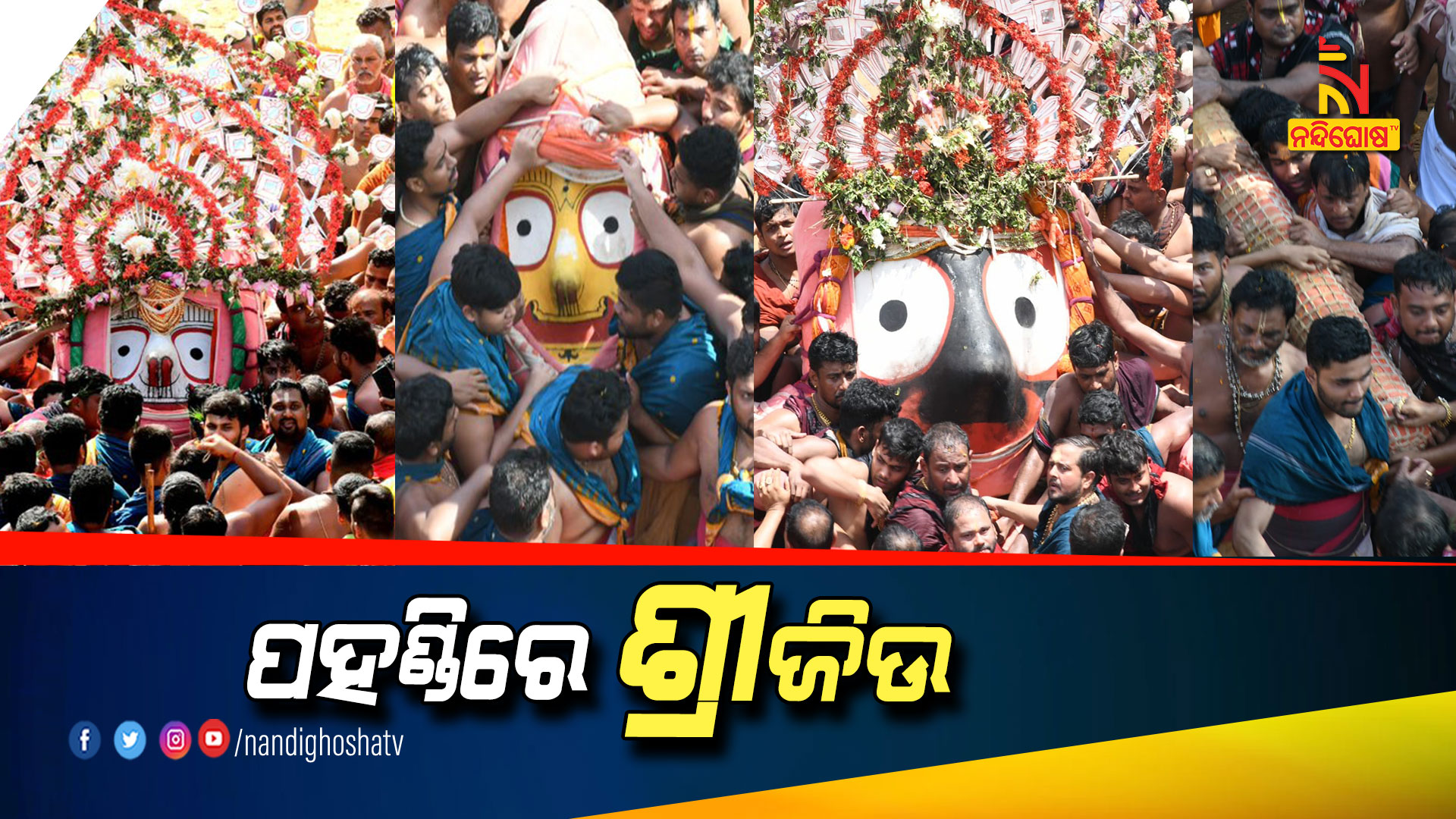 ତେବେ ଆଜି ତିନି ଠାକୁରଙ୍କୁ ଗୋଟି ପହଣ୍ଡିରେ ରଥ ଉପରକୁ ଆସୁଛନ୍ତି ତିନି ଦିଅଁ । ମଧ୍ୟାହ୍ନ ୧୨ଟାରୁ ସାଢେ ୨ଟା ମଧ୍ୟରେ ହେବ ବାହୁଡା ପହଣ୍ଡି । ଦିନ ଗୋଟାଏ ସାଢେ ୨ଟା ମଧ୍ୟରେ ଶେଷ ହେବ ବେଶ । ପରେ ଅପରାହ୍ନ ସାଢେ ୨ଟାରୁ ୩ଟା ୩୦ମଧ୍ୟରେ ଛେରା ପହଁରା କରାଯାଇ ଅପରାହ୍ନ ୩ଟାରୁ ୪ଟା ମଧ୍ୟରେ ଚାରମାଳ ଫିଟିବା ଓ ଘୋଡା ଲାଗି ହେବ । ଏହାପରେ ଅପରାହ୍ନ ୪ଟାରୁ ଆରମ୍ଭ ହେବ ରଥଟଣା ।