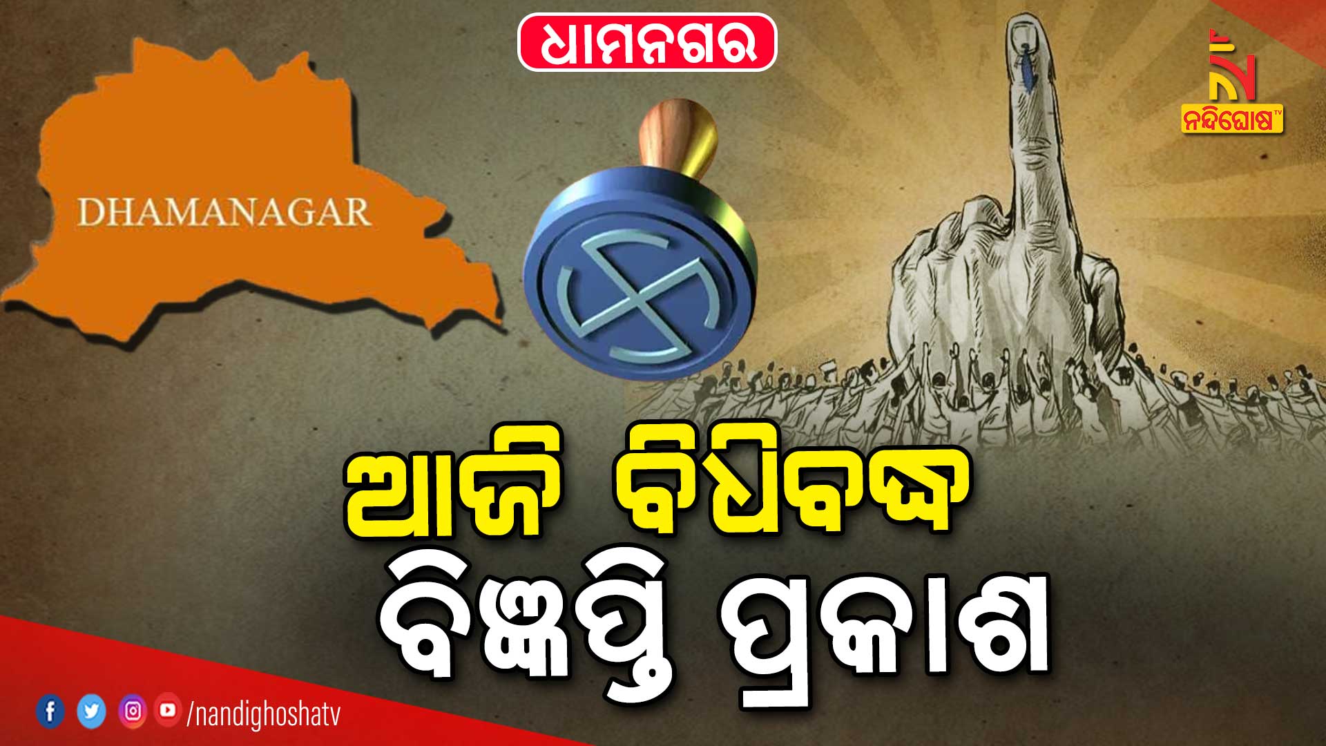 ଧାମନଗର: ଧାମନଗର ଉପନିର୍ବାଚନ ପାଇଁ ଆଜି ପ୍ରକାଶ ପାଇବ ବିଧିବଦ୍ଧ ବିଜ୍ଞପ୍ତି । ଆଜିଠୁ ଆରମ୍ଭ ହେବ ନାମାଙ୍କନ ପ୍ରକ୍ରିୟା । ଅକ୍ଟୋବର ୧୪ ତାରିଖ ସୁଦ୍ଧା ନାମାଙ୍କନପତ୍ର ଦାଖଲ କରିବେ ପ୍ରାର୍ଥୀ । ୧୫ ତାରିଖରେ ପାର୍ଥିପତ୍ର ଯାଞ୍ଚ କରାଯିବ । ନାମାଙ୍କନପତ୍ର ପ୍ରତ୍ୟାହାରର ଶେଷ ତାରିଖ ରହିଛି ଅକ୍ଟୋବର ୧୭ । ନଭେମ୍ବର ୩ ତାରିଖରେ ଭୋଟିଂ ଓ ୬ ତାରିଖରେ ଗଣତି ହୋଇ ଫଳାଫଳ ପ୍ରକାଶ ପାଇବ । ଗତ ସେପ୍ଟେମ୍ବର ୧୯ରେ ବିଷ୍ଣୁଙ୍କର ପରଲୋକ ହୋଇଥିଲା । ବିଷ୍ଣୁ ସେଠୀଙ୍କ ବିୟୋଗରେ ଖାଲି ପଡ଼ିଛି ଧାମନଗର ବିଧାନସଭା ଆସନ ।