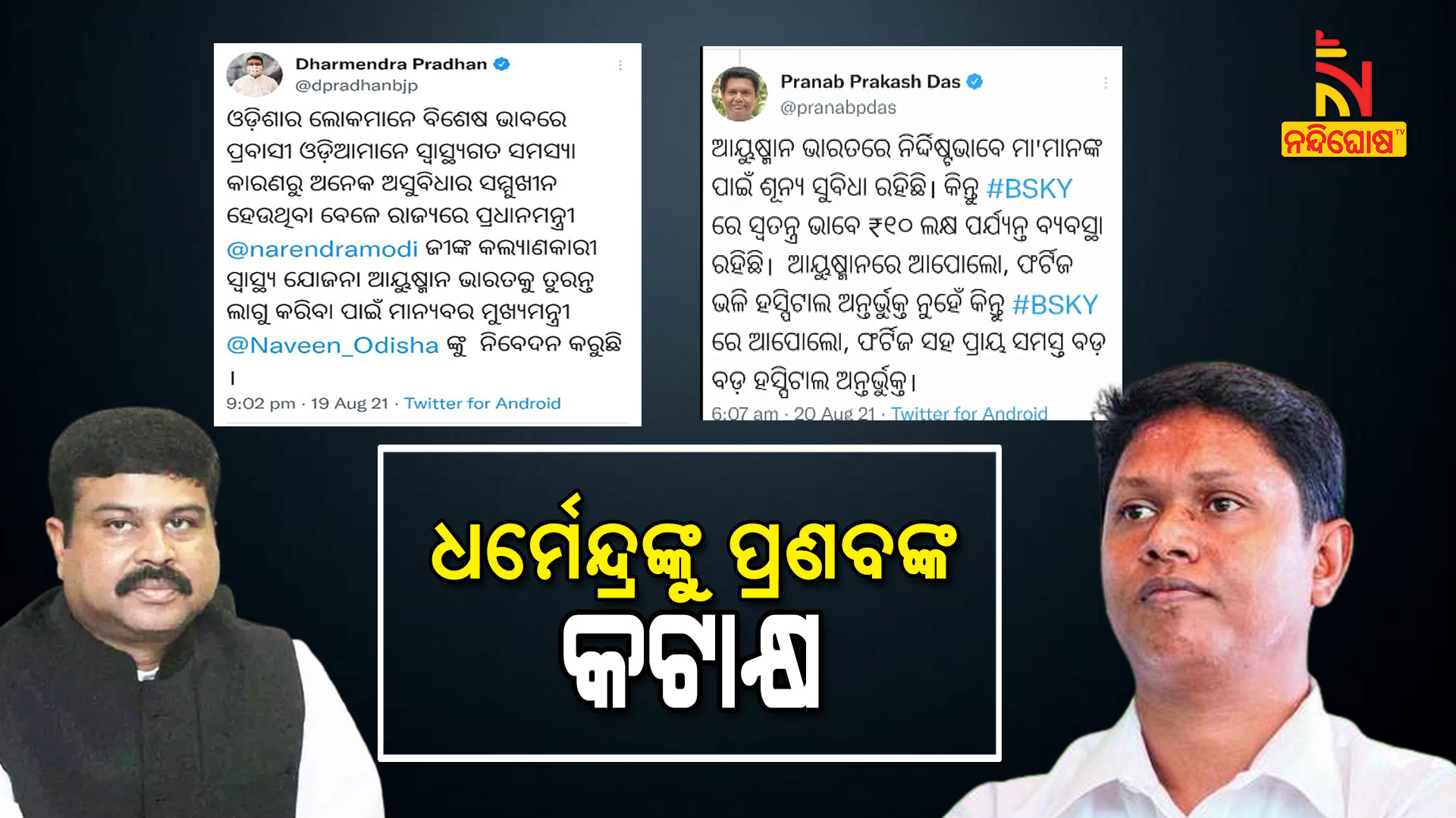 ଭୁବନେଶ୍ୱର: ରାଜ୍ୟ ସରକାରଙ୍କ ବିଜୁ ସ୍ୱାସ୍ଥ୍ୟ କଲ୍ୟାଣ ସ୍ମାର୍ଟ କାର୍ଡ ପ୍ରତି ବିଜେପିର ଅସହିଷ୍ଣୁତା ମନୋଭାବ ଦେଖିବାକୁ ମିଳିଛି। ରାଜ୍ୟବାସୀଙ୍କୁ ଉନ୍ନତ୍ତ ସ୍ୱାସ୍ଥ୍ୟ ସେବା ଯୋଗାଇବା ନେଇ ରାଜ୍ୟ ସରକାରଙ୍କ ଗୋଟିଏ ପରେ ଗୋଟିଏ ପଦକ୍ଷେପରେ ବିଚଳିତ ହୋଇପଡ଼ିଛି ବିଜେପି । ରାଜ୍ୟରେ କେନ୍ଦ୍ର ସରକାରଙ୍କ ଆୟୁଷ୍ମାନ ଭାରତକୁ ଲାଗୁ କରିବା ପାଇଁ ପୁଣି ଟ୍ୱିଟ କରି ଦାବି ଦୋହରାଛନ୍ତି କେନ୍ଦ୍ରମନ୍ତ୍ରୀ ଧର୍ମେନ୍ଦ୍ର ପ୍ରଧାନ। ହେଲେ ରାଜ୍ୟ ସରକାରଙ୍କ BSKY କାର୍ଡ ତୁଳନାରେ ଏହା ସମୁଦ୍ରକୁ ଶଙ୍ଖେ। ଏନେଇ ଧର୍ମେନ୍ଦ୍ରଙ୍କୁ ଟ୍ୱିଟ୍ କରି ଜବାବ ଦେଇଛନ୍ତି ବିଜେଡି ସାଙ୍ଗଠନିକ ସମ୍ପାଦକ ପ୍ରଣବ ପ୍ରକାଶ ଦାଶ।