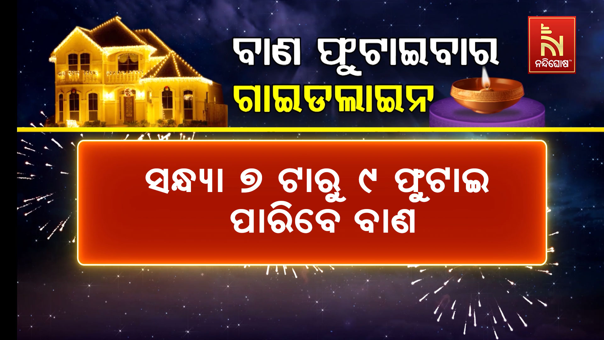 ସେହିପରି ଦୋକାନ, ଅଗ୍ନି ପ୍ରବଣ ସ୍ଥାନ, ରାସ୍ତା ଓ ଅଧିକ ଯାତାୟାତ ସ୍ଥାନରେ ବାଣ ଫୁଟାଇବାକୁ ମଧ୍ୟ ବାରଣ କରାଯାଇଛି । ୧୦ ବର୍ଷରୁ କମ୍ ବୟସର ଶିଶୁମାନେ ଶବ୍ଦ ସୃଷ୍ଟି କରୁଥିବା ବାଣଠାରୁ ଦୂରରେ ରହିବା ଉଚିତ । ବାଣ ଫୁଟାଇବା ସମୟରେ କଟନ ବା ସୂତା କପଡା ପରିଧାନ କଲେ ସୁରକ୍ଷତି ରହି ହେବ । ବାଣରେ ବେରିଅମ ଓ ଅନ୍ୟାନ୍ୟ ନିଷିଦ୍ଧ ରସାୟନିକ ଦ୍ରବ୍ୟ ବ୍ୟବହାର ହୋଇ ପାରିବ ନାହିଁ । ନିୟମ ଖିଲାପ କଲେ ୨୦୦୦ ଟଙ୍କା ଜରିମାନା ଗଣିବାକୁ ପଡ଼ିବ । ନିୟମାବଳୀକୁ କଡ଼ାକଡି ପାଳନ କରିବା ଦିଗରେ ଏସପି ଓ ଜିଲ୍ଲାପାଳମାନଙ୍କୁ ପ୍ରଦୂଷଣ ନିୟନ୍ତ୍ରଣ ବୋର୍ଡ ପକ୍ଷରୁ ଚିଠି କରାଯାଇଛି । ତେବେ ବାଣଠାରୁ ଦୂରରେ ରହି ଦୀପାବଳିରେ କେବଳ ଦୀପ ଜଳାଇ ପାଳନ କରିବାକୁ ପରାମର୍ଶ ଦିଆଯାଇଛି ।