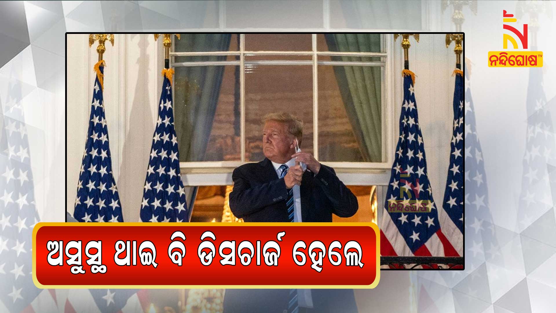 ୱାସିଂଟନ: ଆମେରିକା ରାଷ୍ଟ୍ରପତି ଡୋନାଲ୍ଡ ଟ୍ରମ୍ପ ହସ୍ପିଟାଲରୁ ହ୍ୱାଇଟହାଉସକୁ ଫେରିଛନ୍ତି। ମଙ୍ଗଳବାର ଦିନ ଡୋନାଲ୍ଡ ଟ୍ରମ୍ପ ହସ୍ପିଟାଲରୁ ଡିସଚାର୍ଜ ହେବା ପରେ ହ୍ୱାଇଟ ହାଉସକୁ ଫେରିଛନ୍ତି । ଯଦିଓ, ସେ ଏବେ ସୁଦ୍ଧା କରୋନା ସଂକ୍ରମଣରୁ ସମ୍ପୂର୍ଣ୍ଣ ସୁସ୍ଥ ହୋଇନାହାଁନ୍ତି ଏବଂ ଏବେବି କରୋନାରେ ପୀଡ଼ିତ ଅଛନ୍ତି । କିନ୍ତୁ ହସ୍ପିଟାଲରୁ ଡିସଚାର୍ଜ ନେଇ ହ୍ୱାଇଟ ହାଉସରେ ପହଞ୍ଚି ସେ ପ୍ରଥମେ ଗଣମାଧ୍ୟମକୁ ସମ୍ବୋଧିତ କରିଛନ୍ତି ।