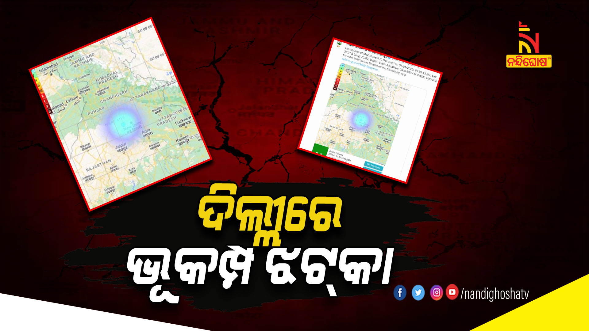 ନୂଆଦିଲ୍ଲୀ: ନୂଆବର୍ଷରେ ଦିଲ୍ଲୀରେ ଭୂକମ୍ପ ଝଟ୍‌କା । ବିଳମ୍ବିତ ରାତି ପ୍ରାୟ ଗୋଟେ ୧୯ରେ ଲୋକ ଯେତେବେଳେ ନୂଆବର୍ଷକୁ ସ୍ବାଗତ କରିବାକୁ ଉତ୍ସବରେ ମସଗୁଲ ଥିଲେ, ସେତେବେଳେ ଦିଲ୍ଲୀ ଏନସିଆର ଅଞ୍ଚଳରେ ଭୂମିକମ୍ପ ଅନୁଭୂତ ହୋଇଛି । ରିକ୍ଟର ସ୍କେଲରେ ଭୂମିକମ୍ପର ତୀବ୍ରତା ୩.୮ ରହିଛି ।