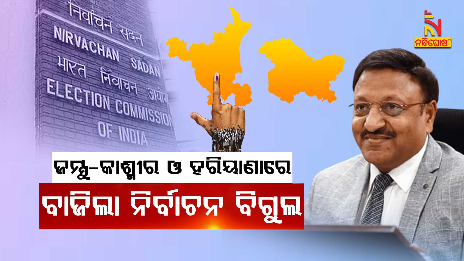 ନୂଆଦିଲ୍ଲୀ: ଦେଶରେ ପୁଣି ବାଜିଲା ନିର୍ବାଚନ ବିଗୁଲ । ଉଷ୍ଣ ହେଲା ରାଜନୀତି । ଜମ୍ମୁ ଓ କାଶ୍ମୀର ଏବଂ ହରିୟାଣା ବିଧାନସଭା ପାଇଁ ନିର୍ବାଚନ ତାରିଖ ଘୋଷଣା କଲେ ମୁଖ୍ୟ ନିର୍ବାଚନ କମିଶନ । ଜମ୍ମୁ ଓ କାଶ୍ମୀରରେ ୩ଟି ପର୍ଯ୍ୟାୟରେ ନିର୍ବାଚନ ହେବାକୁ ଯାଉଥିବା ବେଳେ ହରିୟାଣାରେ ଗୋଟିଏ ପର୍ଯ୍ୟାୟରେ ନିର୍ବାଚନ ହେବ ।