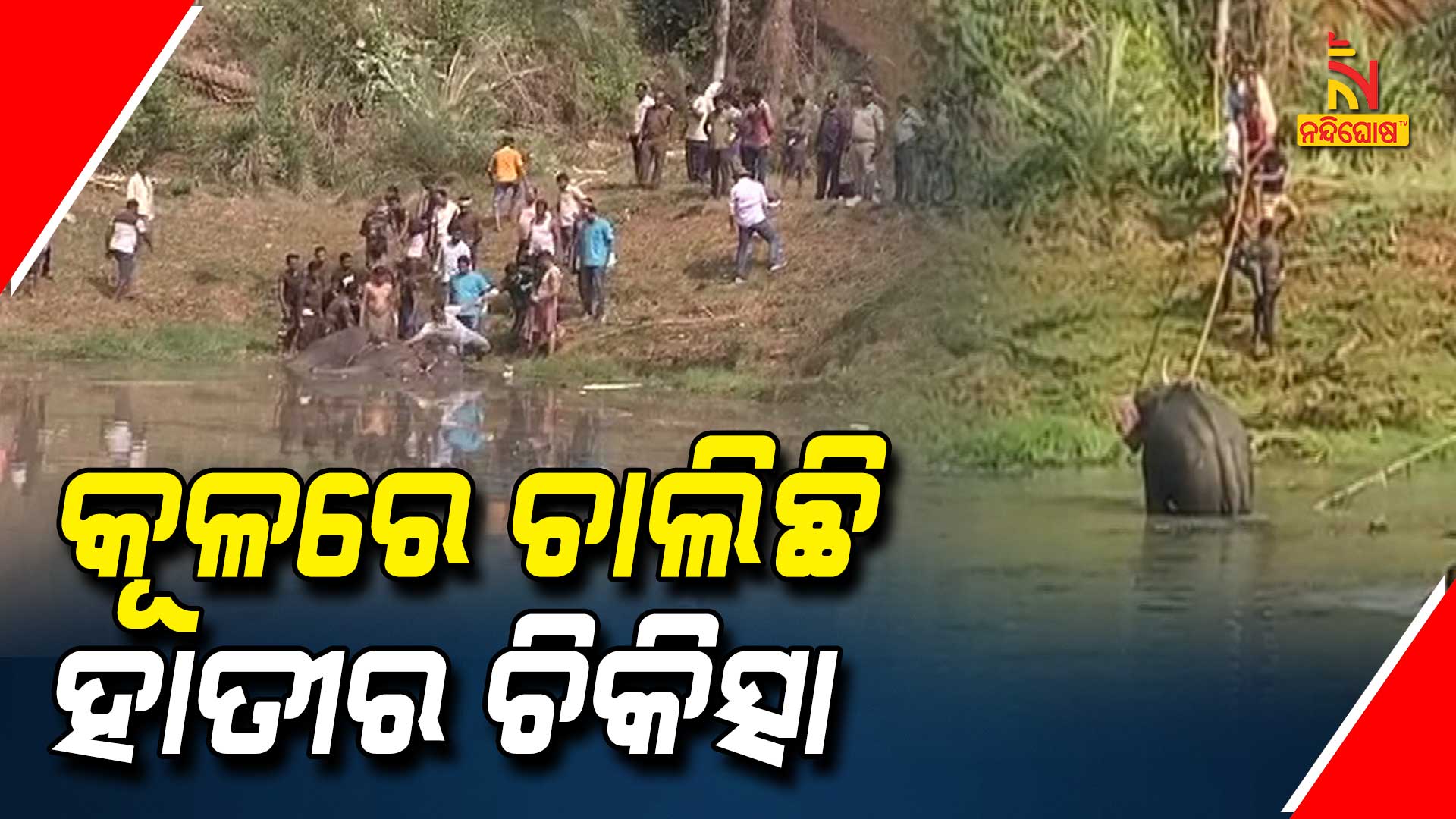 ସମ୍ବଲପୁର: ଜୀବନ ସହ ସଂଗ୍ରାମ କରୁଛି ପୋଖରୀ ପଙ୍କରେ ଫସିଥିବା ହାତୀ । ୭୨ ଘଣ୍ଟା ପରେ ଓୟୁଏଟି ଓ ସାତକୋଶିଆର ସ୍ୱତନ୍ତ୍ର ଟିମ୍ ପହଞ୍ଚି ହାତୀକୁ ରଶିରେ ବାନ୍ଧି କୂଳକୁ ଟାଣି ଆଣିଛନ୍ତି । ହାତୀ ଅସୁସ୍ଥ ଥିବାରୁ ଏତେ ସମୟ ପାଣି ଓ ପଙ୍କରେ ରହି ସ୍ୱାସ୍ଥ୍ୟାବସ୍ଥା ଆହୁରି ବିଗିଡି ଯାଇଛି । ତେବେ ବର୍ତ୍ତମାନ ଅସୁସ୍ଥ ହାତୀର ଚିକିତ୍ସା ଜାରି ରହିଛି । ହାତୀକୁ ପୋଖରୀ ଭିତରୁ କାଢ଼ିବା ପାଇଁ ବନ ବିଭାଗର ସବୁ ଫର୍ମୁଲା ଫେଲ ମାରିବା ପରେ ଆଜି ଓୟୁଏଟି ଓ ସାତକୋଶିଆରୁ ଟିମ୍ ଆସି ହାତୀକୁ କୂଳକୁ ଟାଣି ଆଣିବା ସହ ତା’ର ଚିକିତ୍ସା କରୁଛନ୍ତି । ଲଗାତର ୩ ଦିନ ଧରି ହାତୀକୁ ପାଣି ପଙ୍କରୁ କାଢ଼ିବାକୁ ନାକେଦମ ହୋଇଛି ବନ ବିଭାଗ । କେତେବେଳେ ହାତୀ କୂଳକୁ ଆସୁଥିଲା ତ ଆଉ କେତେବେଳେ ପାଣି ମଝିରେ ଶୋଇପଡୁଥିଲା ।