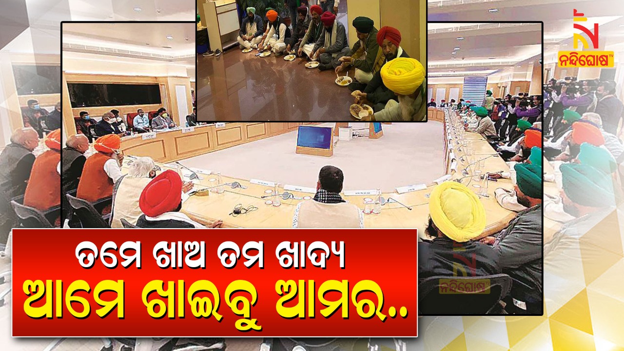 ନୂଆଦିଲ୍ଲୀ: ସରିନାହିଁ ଆଲୋଚନା ,ବାହାରିନି ନିଷ୍କର୍ସ । ଦିଲ୍ଲୀସ୍ଥିତି ବିଜ୍ଞାନ ଭବନରେ ବସିଛି ଚାଷୀ-ସରକାର ବୈଠକ । କିନ୍ତୁ ଏହାରି ମଧ୍ୟରେ ମଧ୍ୟାହ୍ନ ଭୋଜନ ବିରତିରେ ଦେଖାଯାଇଛି ପୂର୍ବସ୍ଥିତି । କେନ୍ଦ୍ର ସରକାରଙ୍କ ଖାଦ୍ୟକୁ ଗ୍ରହଣ କରିବୁନାହିଁ ବୋଲି ସିଧାସିଧା କହିଛନ୍ତି ଚାଷୀ । ପୁନର୍ବାର ମଧ୍ୟାହ୍ନ ଭୋଜନକୁ ବର୍ଜନ କରିଛି ସଂଗଠନ । ଆଉ ସରକାରଙ୍କୁ ସ୍ପଷ୍ଟ ଭାବେ କହିଛନ୍ତି ତୁମେ ତୁମ ଖାଦ୍ୟ ଖାଅ, ଆମେ ଆମ ଖାଦ୍ୟ ଖାଇବୁ ।