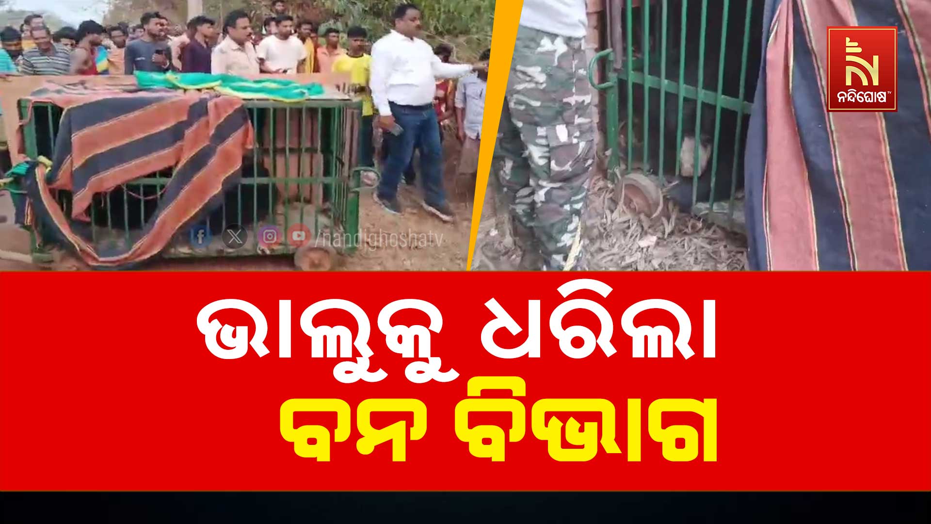 ନବରଙ୍ଗପୁର : ନବରଙ୍ଗପୁର ବନ ବିଭାଗ ଜାଲରେ ଜଙ୍ଗଲୀ ଭାଲୁ । ନବରଙ୍ଗପୁର ଜିଲ୍ଲା କୋଡ଼ିଙ୍ଗା ରେଞ୍ଜ ଅଧିନ ବରଗାଁରେ ଦୀର୍ଘଦିନ ଧରି ଏକ ଜଙ୍ଗଲୀ ଭାଲୁ ଖାଦ୍ୟ ଅନ୍ୱେଷଣରେ ପଶି ଆସିଥିଲା । ଘର ଗୁଡିକ ଭିତରକୁ ପଶି ଖାଦ୍ୟ ଖାଇବା ସହ ଆତଙ୍କ ସୃଷ୍ଟି କରିଥିଲା । ଗ୍ରାମବାସୀ ଭୟଭୀତ ହୋଇ ରହୁଥିଲେ । ଗ୍ରାମବାସୀ ଖବର ଦେବା ପରେ ଭାଲୁକୁ କାବୁ କରିଛି ବନ ବିଭାଗ ।