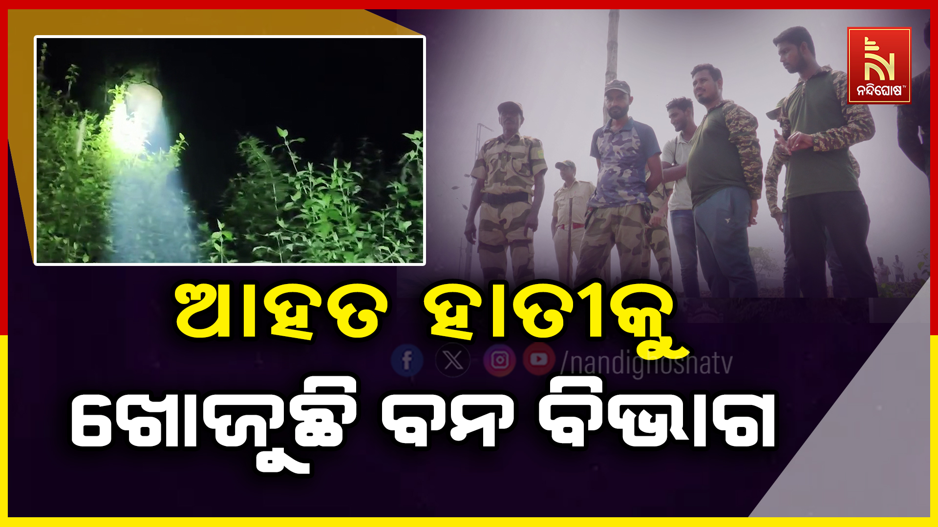 ହାତୀର ଗୋଡରେ କ୍ଷତ ଥିବାରୁ ଚିକିତ୍ସା ପାଇଁ ଆହତ ହାତୀକୁ ଜଙ୍ଗଲରେ ଖୋଜି ବୁଲୁଛୁ ବନ ବିଭାଗ। ତୁରନ୍ତ ଚିକିତ୍ସା ନକଲେ ହାତୀର ଜୀବନ ପ୍ରତି ବିପଦ ଥିବା କହିଛନ୍ତି ବନ କର୍ମଚାରୀ। ଯାହାକୁ ନେଇ ବନ ବିଭାଗର ଚିନ୍ତା ବଢ଼ି ଯାଇଛି। ଖୁବ୍ ଶୀଘ୍ର ହାତୀକୁ ଖୋଜି ଚିକିତ୍ସା କରାଯିବ ବୋଲି DFO କହିଛନ୍ତି ।ହାତୀକୁ ଖୋଜିବା ପାଇଁ ଡ୍ରୋନ କ୍ୟାମେରାର ସାହାଯ୍ୟ ନିଆଯାଇଛି। ଜଙ୍ଗଲ ଭିତରେ ଚାରିଟି ଟିମ୍ ଆହତ ହାତୀକୁ ଖୋଜିବାରେ ଲାଗିଛି।