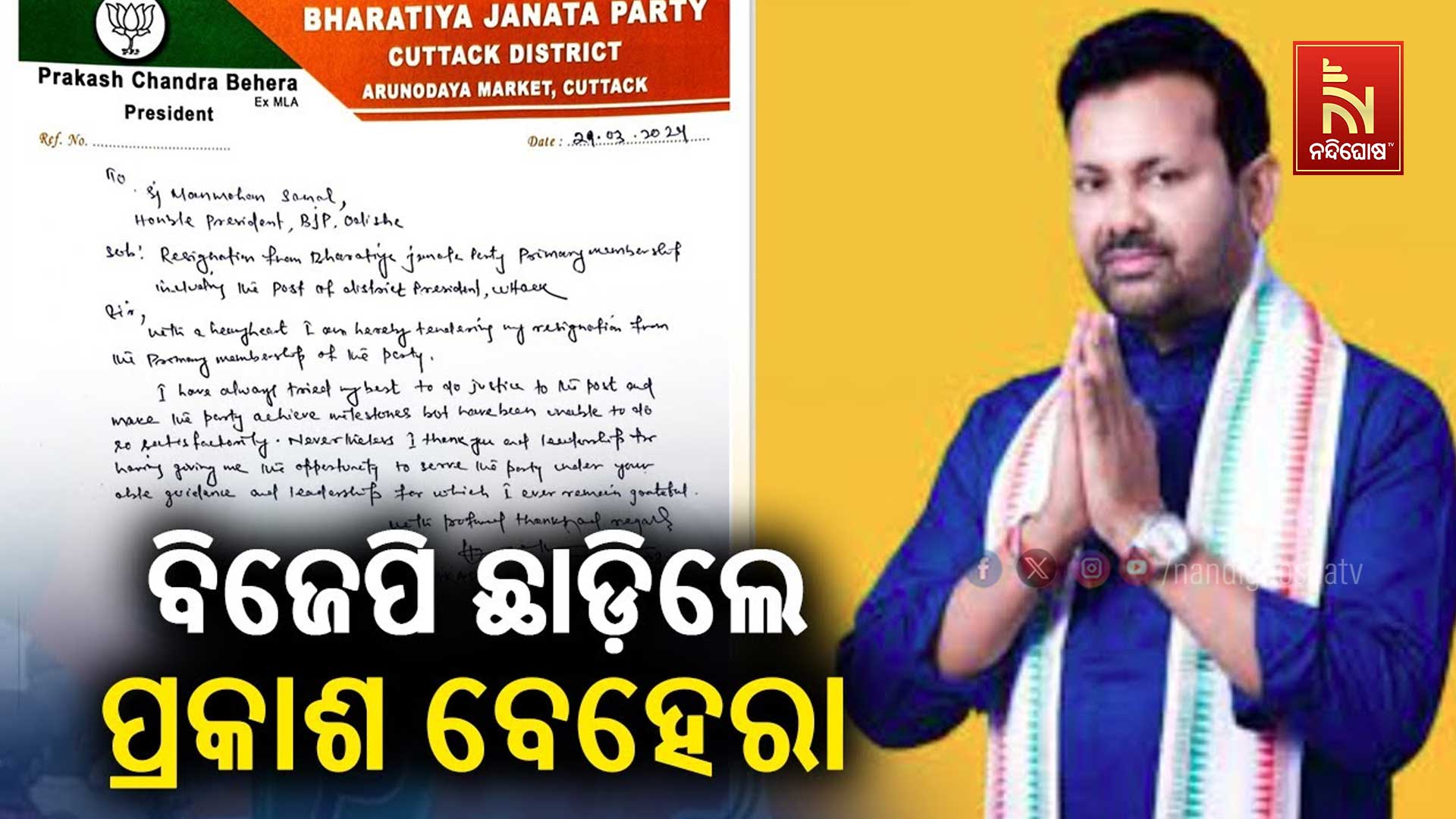 ସାଲେପୁର : ବିଜେପି ଛାଡ଼ିଲେ ପୂର୍ବତନ ବିଧାୟକ ପ୍ରକାଶ ଚନ୍ଦ୍ର ବେହେରା। ଦଳର ପ୍ରାଥମିକ ସଦସ୍ୟ ପଦରୁ ଇସ୍ତଫା ଦେଇଛନ୍ତି ପୂର୍ବତନ ବିଧାୟକ ପ୍ରକାଶ ଚନ୍ଦ୍ର ବେହେରା। ଏ ନେଇ ସେ ଜିଲ୍ଲା ବିଜେପି ସଭାପତି ମନମୋହନ ସାମଲଙ୍କୁ ତାଙ୍କର ଇସ୍ତଫା ପତ୍ର ପଠାଇ ଦେଇଛନ୍ତି। ଏହାସହ କଟକ ଜିଲ୍ଲା ବିଜେପି ସଭାପତି ପଦରୁ ମଧ୍ୟ ଇସ୍ତଫା ଦେଇଥିବା ଇସ୍ତଫା ପତ୍ରରେ ଉଲ୍ଲେଖ କରିଛନ୍ତି। ଏହାସହ ଦଳରେ ଥିବା ବିଭିନ୍ନ ପଦପଦବୀରୁ ଇସ୍ତଫା ଦେଇଥିବା ଉଲ୍ଲେଖ କରିଛନ୍ତି। ସାଲେପୁରର ପୂର୍ବତନ ବିଧାୟକ ହେଉଛନ୍ତି ପ୍ରକାଶ ଚନ୍ଦ୍ର ବେହେରା।