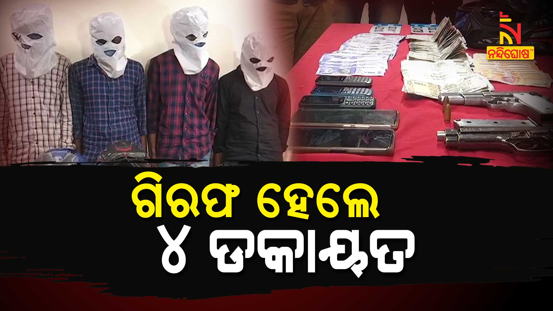 କଟକ: ଜଗତପୁର ସତ୍ୟଭାମାପୁର ଠାରେ ଘଟିଥିବା SBIର ଗ୍ରାହକ ସେବା କେନ୍ଦ୍ରରେ ଘଟିଥିବା ଡକାୟତି ଘଟଣାରେ ପୋଲିସକୁ ସଫଳତା । 4 ଜଣ ଡକାୟତଙ୍କୁ ଗିରଫ କରିବା ସହ ଡକାୟତିରେ ବ୍ୟବହାର ବନ୍ଧୁକ ଓ ଖଣ୍ଡା ଜବତ କରିଛି ଜଗତପୁର ପୋଲିସ୍ । ଲୁଟ ହୋଇଥିବା ଏକ ଲକ୍ଷ ଟଙ୍କାକୁ ମଧ୍ୟ ପୋଲିସ ଜବତ କରିଛି ।ଗାଙ୍ଗର ମାଷ୍ଟରମାଇଣ୍ଡ ଥିଲେ ଗୋବିନ୍ଦପୁରର ଦୁଇ ଭାଇ ଦିପୁ ଓ ଲିପୁ ।