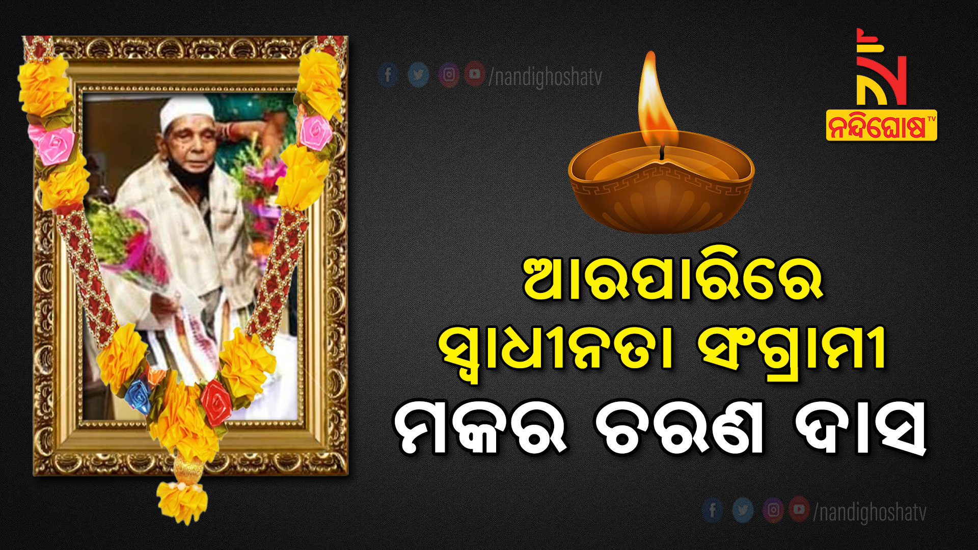 ଭୁବନେଶ୍ବର : ବର୍ଷିୟାନ ସ୍ୱାଧୀନତା ସଂଗ୍ରାମୀ ମକର ଚରଣ ଦାସଙ୍କ ବିୟୋଗରେ ମୁଖ୍ୟମନ୍ତ୍ରୀ ନବୀନ ପଟ୍ଟନାୟକ ଗଭୀର ଶୋକ ପ୍ରକାଶ କରିଛନ୍ତି । ଶୋକବାର୍ତ୍ତାରେ ମୁଖ୍ୟମନ୍ତ୍ରୀ କହିଛନ୍ତି ଯେ, ସ୍ୱର୍ଗତ ଦାସ ଜଣେ ମହାନ ଦେଶଭକ୍ତ ଥିଲେ।