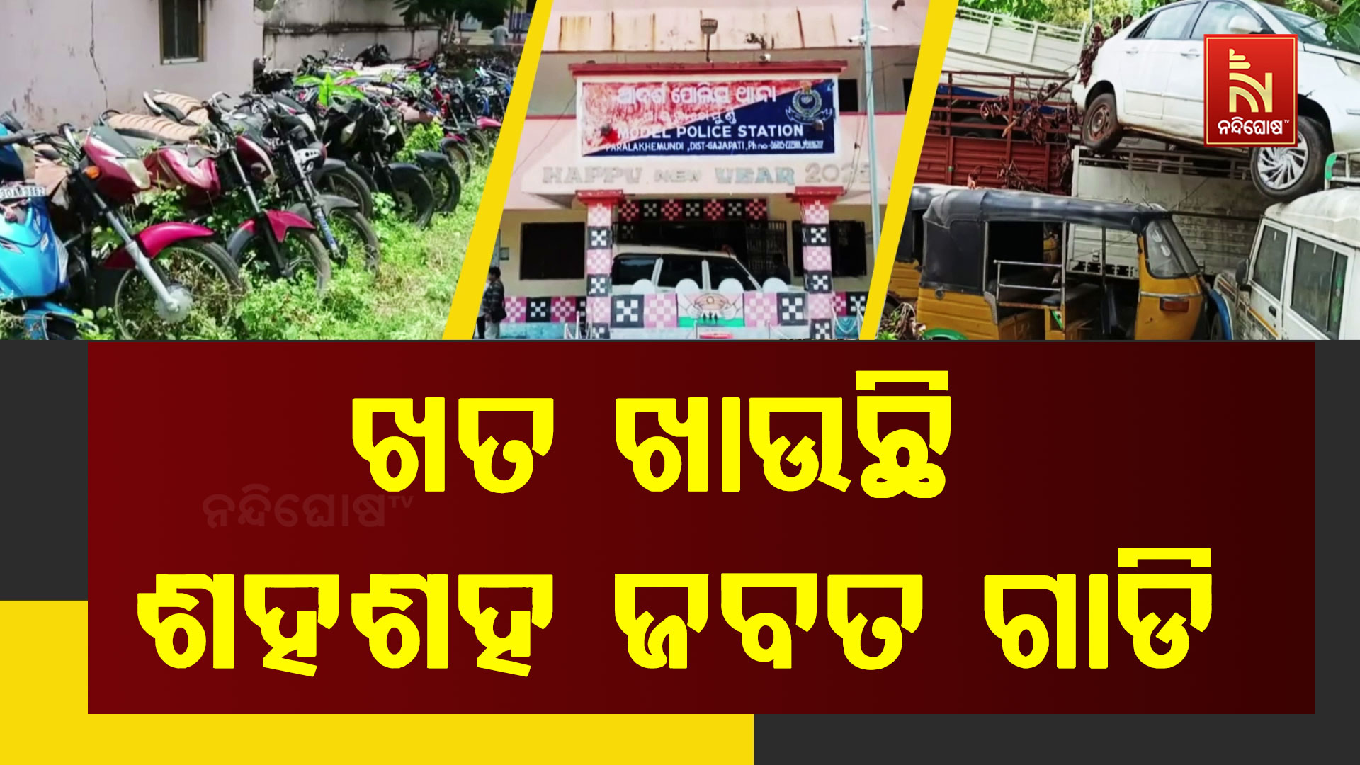 ଗଜପତି : ଗଦା ହୋଇ ପଡିଛି ଶହଶହ ଗାଡି । ଖରାବର୍ଷା ଖାଇ ହେଲାଣି ଖତ । କର୍ତ୍ତୃପକ୍ଷଙ୍କ ନାହିଁ ନିଘା ।.. ..ଏହା କୌଣସି କବାଡିଖାନାର ଦୃଶ୍ଯ ନୁହେଁ । ଏ ହେଉଛି ସରକାରୀ କାର୍ଯ୍ଯାଳୟ ପରିସରର ଅବସ୍ଥା । ପରିବହନ କାର୍ଯ୍ୟାଳୟ ହେଉ ଅବା ଅବକାରୀ କାର୍ଯ୍ୟାଳୟ କି ଥାନା । ସବୁଠି ଖତ ଖାଉଛି ଦୁଇ ଚକିଆ ଠାରୁ ଆରମ୍ଭ କରି ବଡବଡ ଟ୍ରକ ଭଳି ଯାନବାହନ । ଏ ସମସ୍ତ ଗାଡି ଗୁଡିକ ବିଭିନ୍ନ ମାମଲାରେ ଜବତ କରାଯାଇଥିଲା । ହେଲେ ଗାଡି ମାଲିକ ମୁକୁଳାଇ ନପାରିବାରୁ ତାହା ପଡି ପଡି ନଷ୍ଟ ହେଉଛି । ଅନେକ କ୍ଷେତ୍ରରେ ନକଲି ନମ୍ବର ବ୍ୟବହାର ହୋଇଥିବା ଗାଡି ପୁଣି କେତେକ କ୍ଷେତ୍ରରେ ଅବଧି ଶେଷ ହୋଇଥିବା ଗାଡିକୁ ଛାଡି ଚାଲିଯାଉଛନ୍ତି ଚାଳକ । ପୋଲିସ କିମ୍ବା ପରିବହନ ବିଭାଗ ପ୍ରକୃତ ମାଲିକ ପାଖରେ ପହଞ୍ଚି ନପାରିବାରୁ ଗାଡି ଗୁଡିକୁ ହସ୍ତାନ୍ତର ହୋଇପାରୁନାହିଁ । ଦିନକୁ ଦିନ ଏଭଳି ମାମଲା ବୃଦ୍ଧି ପାଉଥିବାରୁ ଜବତ ଗାଡି ସଂଖ୍ଯା ବଢି ଚାଲିଛି । ଗାଡି ରଖିବାକୁ କାର୍ଯ୍ଯାଳୟ ପରିସରରେ ସ୍ଥାନ ନଥିବାରୁ ଖୋଲା ସ୍ଥାନରେ ପଡି ନଷ୍ଟ ହେଉଛି ମୂଲ୍ଯବାନ ଗାଡି ।
