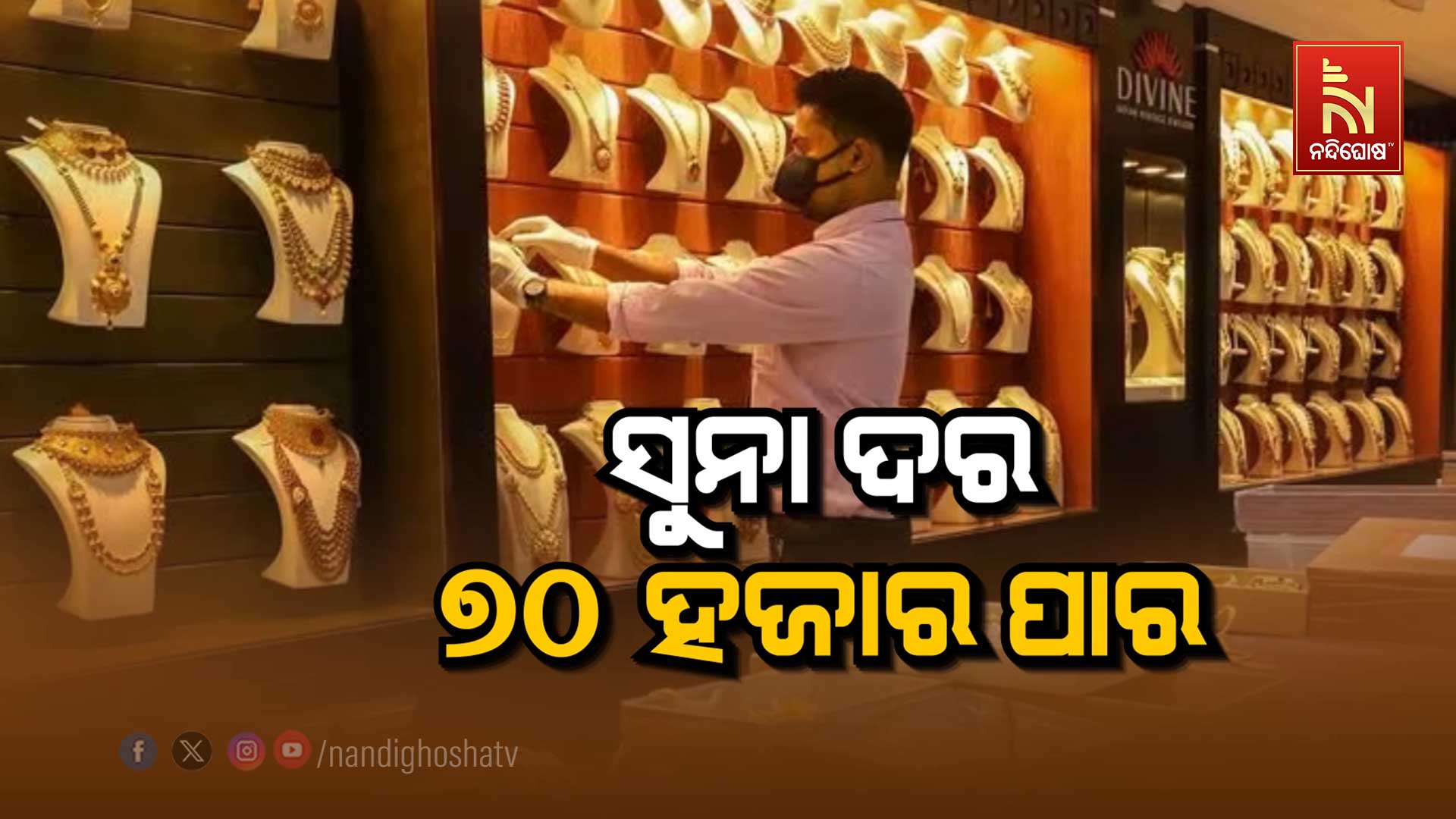 ଭୁବନେଶ୍ବର : ରକେଟ ବେଗରେ ବଢୁଛି ସୁନା ଦର । ସୁନା ଦରରେ ବୃଦ୍ଧି ଧାରା ଜାରି । ୭୦ହଜାର ପାର୍ ହୋଇଛି ସୁନା ଦର । ରାଜଧାନୀ ଭୁବନେଶ୍ବରରେ ୨୪କ୍ଯାରେଟ୍ ୧୦ଗ୍ରାମ ପ୍ରତି ସୁନା ଦର ୭୦,୫୭୩ଟଙ୍କାରେ ପହଞ୍ଚିଛି । ୨୨କ୍ଯାରେଟ୍ ସୁନା ଦର ୧୦ଗ୍ରାମ ପିଛା ୬୪,୬୪୫ଟଙ୍କା । ରୂପା କିଲୋଗ୍ରାମ ପିଛା ୮୪ହଜାର ଟଙ୍କାରେ ପହଞ୍ଚିଛି । ବିଶେଷଜ୍ଞଙ୍କ ଆକଳନ, ସୁନା ଚଳିତ ବର୍ଷ ଛୁଇଁବ ୭୫,୦୦୦ଟଙ୍କା । ସୁନା ଦର ବୃଦ୍ଧିରେ ରହିଛି ଅନେକ କାରଣ । ବିଶ୍ବବ୍ଯାପି ମାନ୍ଦାବସ୍ତା ଆଶଙ୍କା, ବିଶ୍ବର ବିଭିନ୍ନ ପ୍ରାନ୍ତରେ କେନ୍ଦ୍ରୀୟ ବ୍ଯାଙ୍କ ଗୁଡି଼କ ଦ୍ବାରା ପ୍ରଚୁର ମାତ୍ରାରେ ସୁନା କ୍ରୟ ଯୋଗୁ ବଢୁଛି ଦର । ନିବେଶକଙ୍କ ପାଇଁ ବଡ଼ ସୁଯୋଗ ।