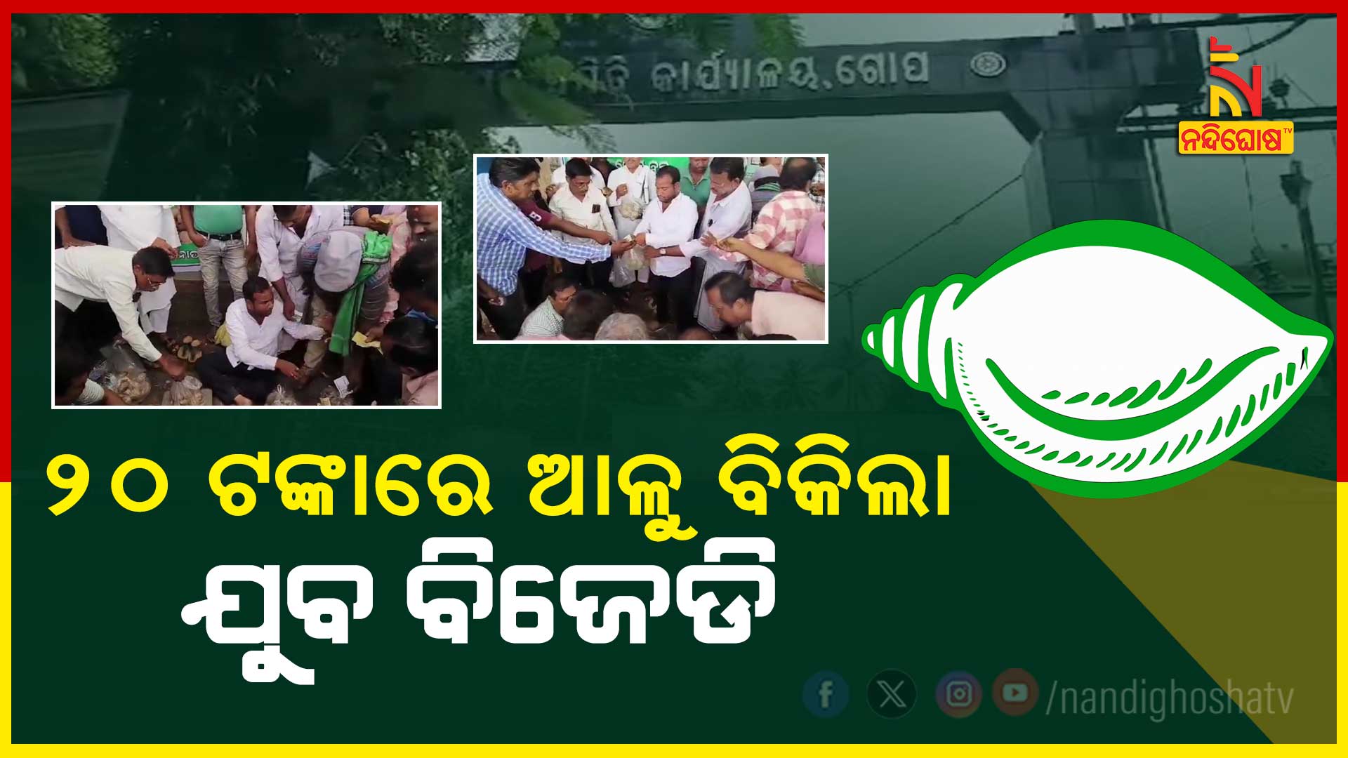 ଗୋପ ବିଜୁ ଯୁବ ଜନତା ଦଳ ପକ୍ଷରୁ ଏପରି ପ୍ରତିବାଦ କରାଯାଇଛି । ଗୋପ ବ୍ଲକ ସମ୍ମୁଖରେ ବିଜୁ ଯୁବ ଜନତା ଦଳ ପକ୍ଷରୁ ୨୦ ଟଙ୍କାରେ କେଜିରେ ଆଳୁ ବିକ୍ରି କରାଯାଇଛି ।