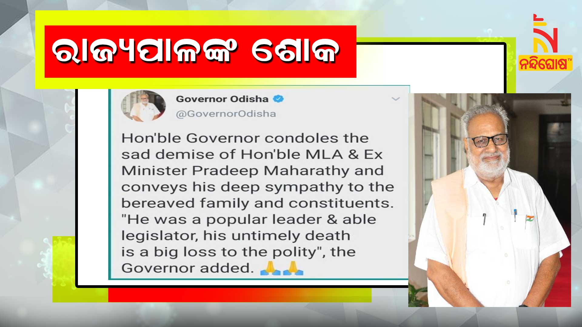 ଭୁବନେଶ୍ୱର: ପିପିଲି ବିଧାୟକ ତଥା ବିଜେଡିର ବରିଷ୍ଠ ନେତା ପ୍ରଦୀପ ମହାରଥୀଙ୍କ ବିୟୋଗରେ ସାରା ରାଜ୍ୟ ଶୋକ ପ୍ରକାଶ କରୁଛି । ଏହି କ୍ରମରେ ରାଜ୍ୟପାଳ ଗଣେଶୀ ଲାଲ୍, କେନ୍ଦ୍ରମନ୍ତ୍ରୀ ଧର୍ମେନ୍ଦ୍ର ପ୍ରଧାନ ଓ ବିରୋଧୀ ଦଳ ନେତା ପ୍ରଦୀପ ନାଏକ ପ୍ରଦୀପଙ୍କ ବିୟୋଗରେ ଶୋକ ଜଣାଇଛନ୍ତି ।