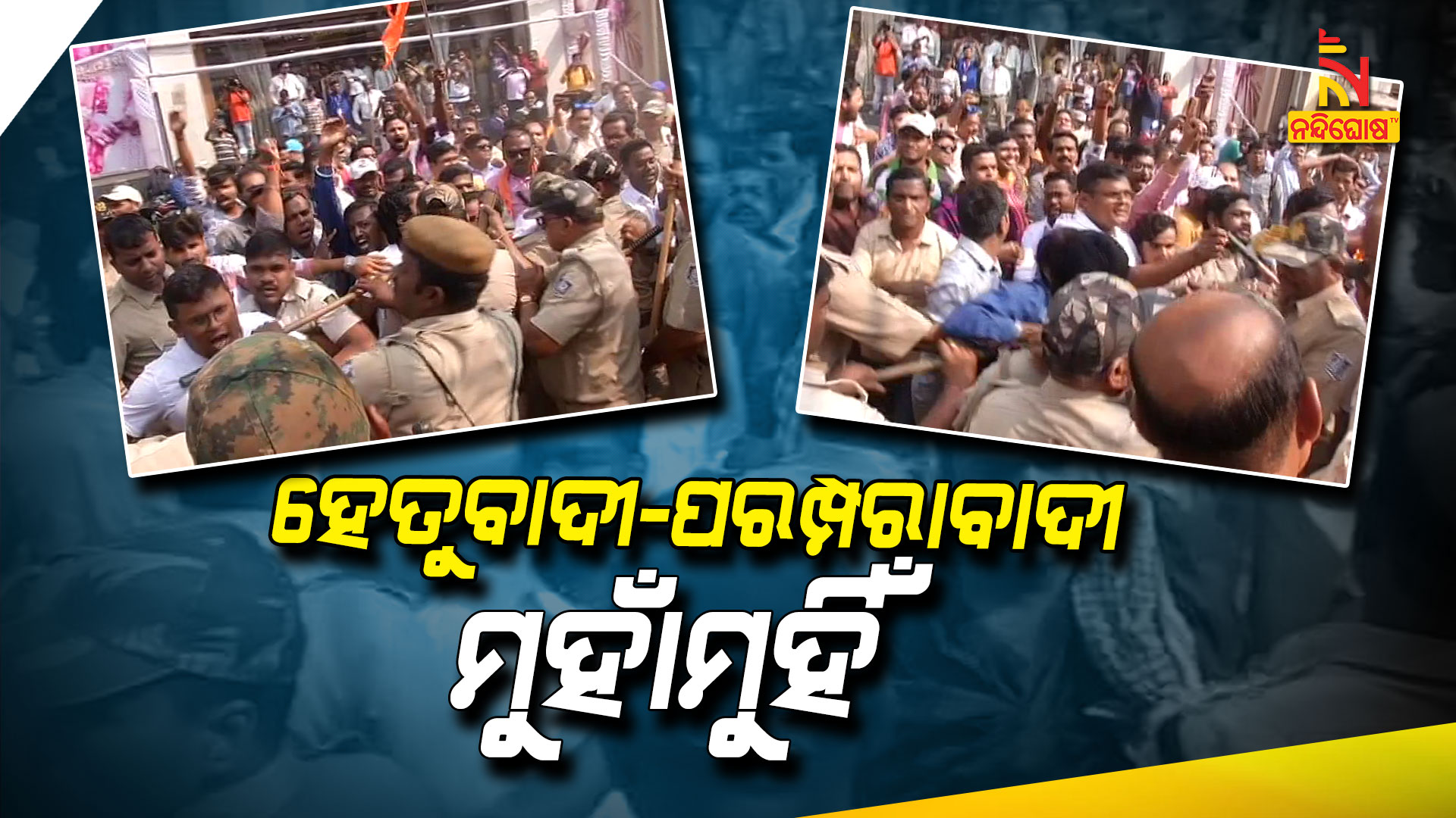 ଭୁବନେଶ୍ୱର: ଚନ୍ଦ୍ରଗ୍ରହଣରେ ଖାଇବାକୁ ନେଇ ମୁହାଁମୁହିଁ ହୋଇଛନ୍ତି ହେତୁବାଦୀ ଓ ପରମ୍ପରାବାଦୀ । ଉଭୟ ପକ୍ଷ ମଧ୍ୟରେ ଠେଲା ପେଲା ସହ ମାରପିଟ ଭଳି ପରିସ୍ଥିତି ସୃଷ୍ଟି ହୋଇଛି । ଭୁବନେଶ୍ବରରେ ଲୋହିଆ ଏକାଡେମୀରେ ବଜରଙ୍ଗ ଦଳ, ବିଶ୍ବ ହିନ୍ଦୁ ପରିଷଦ ଓ ପରମ୍ପରାବାଦୀମାନେ ହେତୁବାଦୀଙ୍କୁ ତୀବ୍ର ବିରୋଧ କରିବା ସହ ଭଙ୍ଗାରୁଜା କରିଛନ୍ତି । ଟେକା ପଥର ମାରିଛନ୍ତି ପରମ୍ପରାବାଦୀ । ଢେଲାପଥର ମାଡ଼ରେ ହେତୁବାଦୀ ଗୋଷ୍ଠୀର କିଛି ସଦସ୍ୟ ଆହତ ହୋଇଛନ୍ତି । ସ୍ଥିତି ଉତ୍ତେଜନାପୂର୍ଣ୍ଣ ଥିବାବେଳେ ପୋଲିସ ପହଞ୍ଚି ଆନ୍ଦୋଳନକାରୀଙ୍କୁ ଘଉଡ଼ାଇଛି । ହେଲେ ବିରୋଧ କରିବାକୁ ନିଜ ଜିଦରେ ଅଟଳ ରହିଛନ୍ତି ପରମ୍ପରାବାଦୀ ।