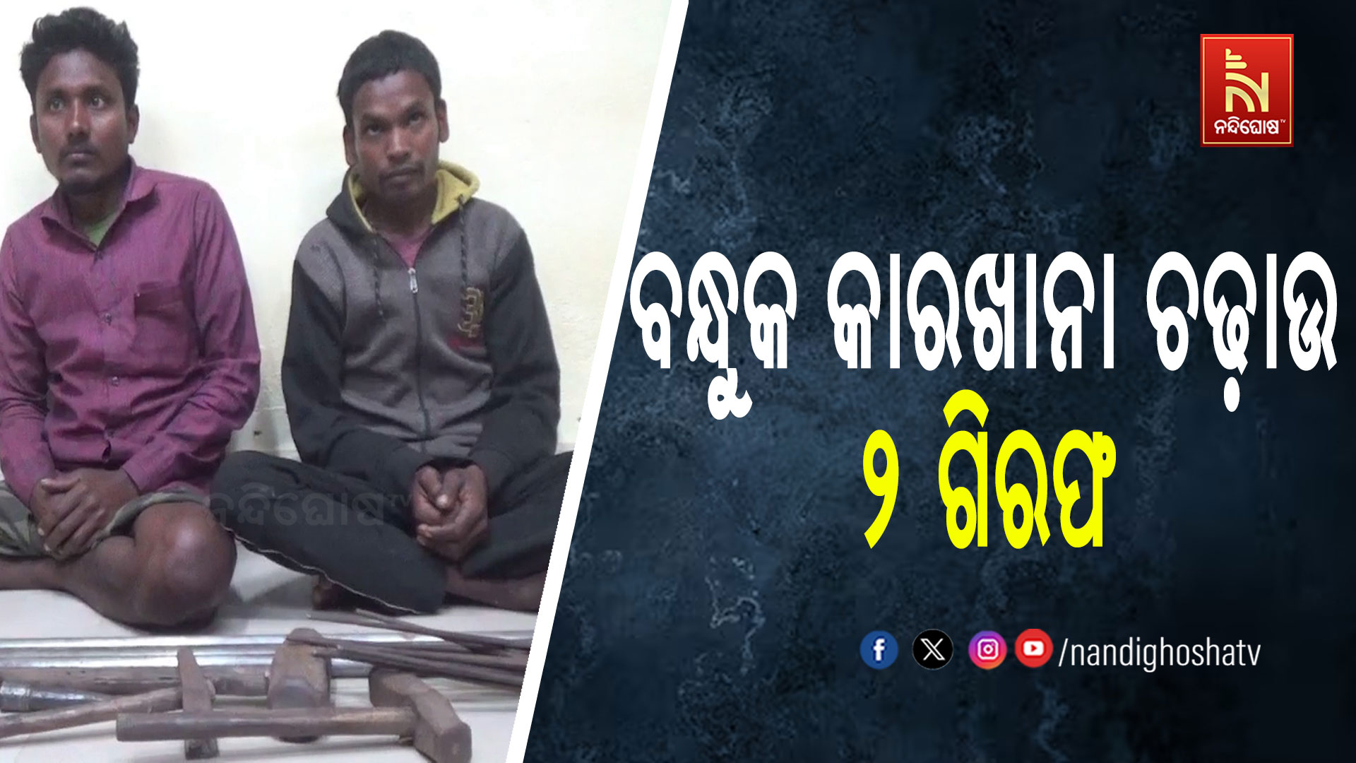 ଗିରଫ ୨ ଜଣ ହେଲେ ୨ ଭାଇ ରବୀନ୍ଦ୍ର ଲୋହାର ଏବଂ ଦୁଃଶାସନ ଲୋହାର। ସେମାନଙ୍କ ନିକଟରୁ ଦେଶୀ ବନ୍ଧୁକ ତିଆରିରେ ଲାଗୁଥିବା ନଜଲ ପାଇପ, ହାତୁଡି, ଓ ଅନ୍ୟ ସାମଗ୍ରୀ ଜବତ କରିବା ପରେ ୨ ଭାଇଙ୍କୁ ପୋଲିସକୁ ହସ୍ତାନ୍ତର କରିଛି ବନବିଭାଗ।