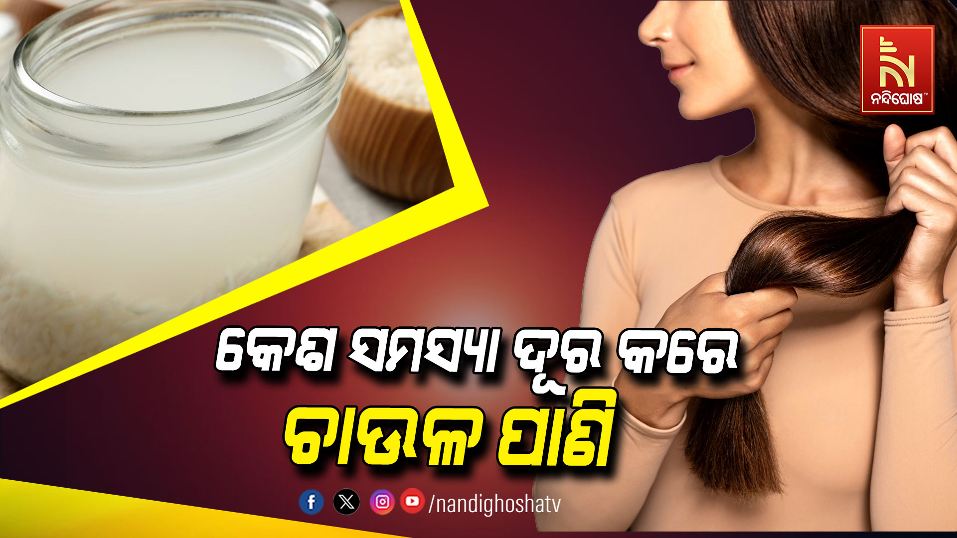 କେଶ ସମସ୍ୟା ଦୂର କରିଥାଏ ଚାଉଳ ପାଣି । ଚାଉଳ ପାଣି ଆମ ଶରୀର ପାଇଁ ବେଶ୍ ଲାଭଦାୟକ। ଏଥିପାଇଁ ଅନେକ ଲୋକ ଧଳା ଚାଉଳ ପାଣି ସେବନ କରିଥାନ୍ତି। କିନ୍ତୁ ଧଳା ଚାଉଳ ଅପେକ୍ଷା ନାଲି ଚାଉଳରେ ଅଧିକ ପୋଷଣ ଥାଏ। ଏଥିରେ ପ୍ରୋଟିନ୍, ଫାଇବର୍, ଜିଙ୍କ୍, କ୍ୟାଲସିୟମ, ଆଇରନ୍, ପୋଟାସିୟମ୍ ଆଦି ପୋଷଣ ଭରପୂର ମାତ୍ରାରେ ରହିଥାଏ ।