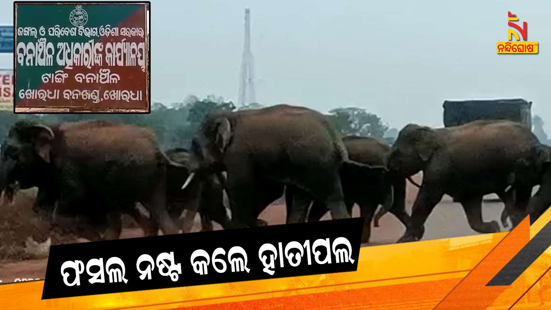 ଟାଙ୍ଗି: ଜଙ୍ଗଲ ଛାଡି ଗାଁ ମୁହାଁ ହାତୀପଲ। ଖୋର୍ଦ୍ଧା ବନଖଣ୍ଡ ଟାଙ୍ଗି ରେଞ୍ଜ ଗୟାବନ୍ଧ ଜଙ୍ଗଲରୁ ୧୭ ଟିକିଆ ହାତୀପଲ ମଳିପଡା ଗାଁର ବିଭିନ୍ନ ଚାଷ ଜମିରେ ପଶି ବ୍ୟାପକ କ୍ଷୟକ୍ଷତି କରିଛନ୍ତି। ରାତି ସାରା ହାତୀଙ୍କ ଗତି ବିଧି ଉପରେ ନଜର ରଖିଥିଲେ ବନ ବିଭାଗ କର୍ମଚାରୀ।