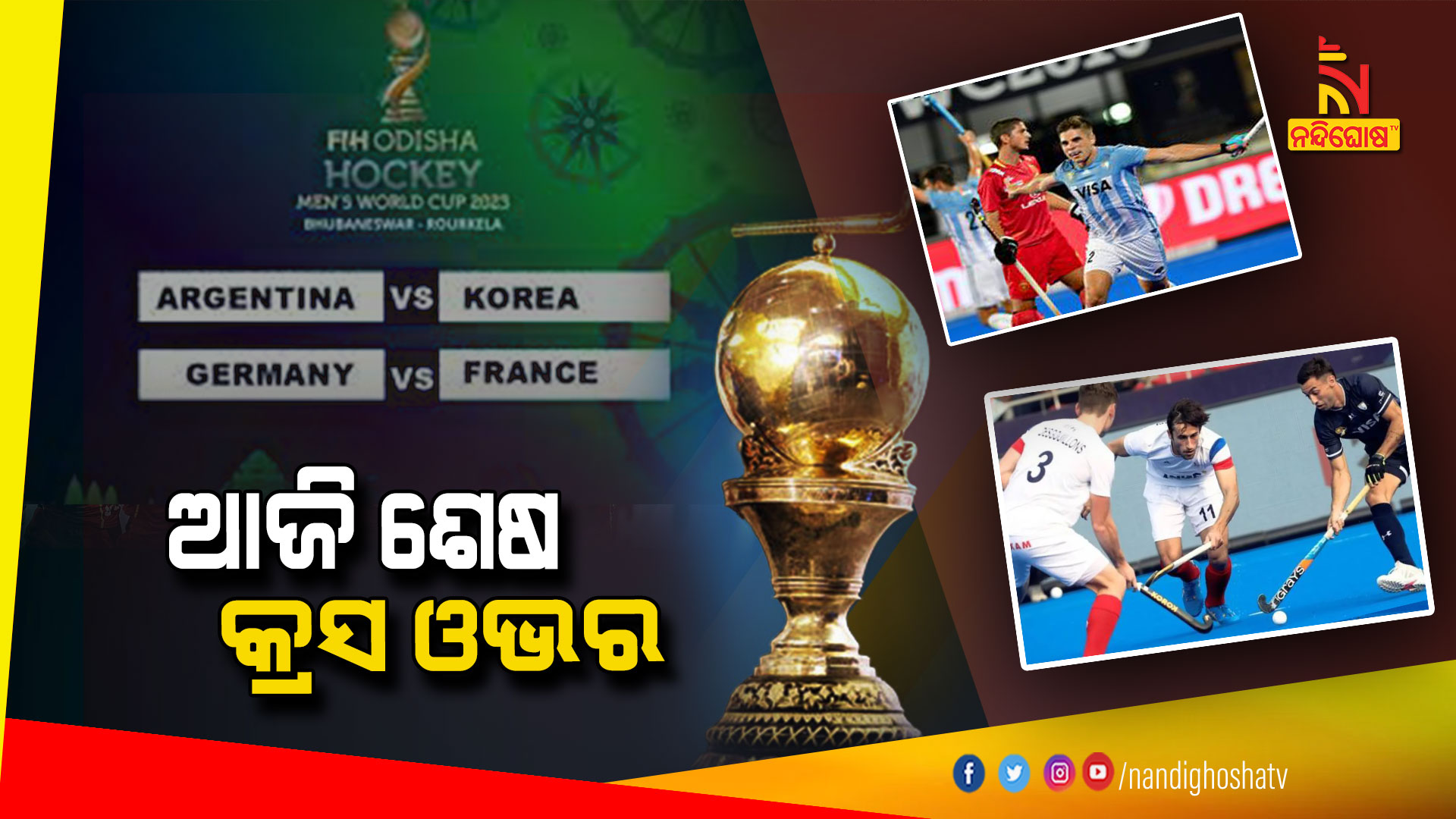 ଭୁବନେଶ୍ୱର: ହକି ବିଶ୍ବକପ ମହାମୁକାବିଲା। କଳିଙ୍ଗରେ ହେବ କଡ଼ା ଟକ୍କର। ଆଜି ଖେଳାଯିବ ୨ଟି କ୍ରସ ଓଭର ମ୍ୟାଚ୍। ଅପରାହ୍ମ ସାଢେ ୪ଟାରେ ଜର୍ମାନୀ-ଫ୍ରାନ୍ସ ମଧ୍ୟରେ ହେବ ମୁକାବିଲା। ସେହିପରି ସନ୍ଧ୍ୟା ୭ଟାରେ ଆର୍ଜେଣ୍ଟିନା-କୋରିଆ ମଧ୍ୟରେ କ୍ରସ ଓଭର ଟକ୍କର। ଆଜି କ୍ରସ ଓଭର ଟକ୍କର ଶେଷ ହେବ ।