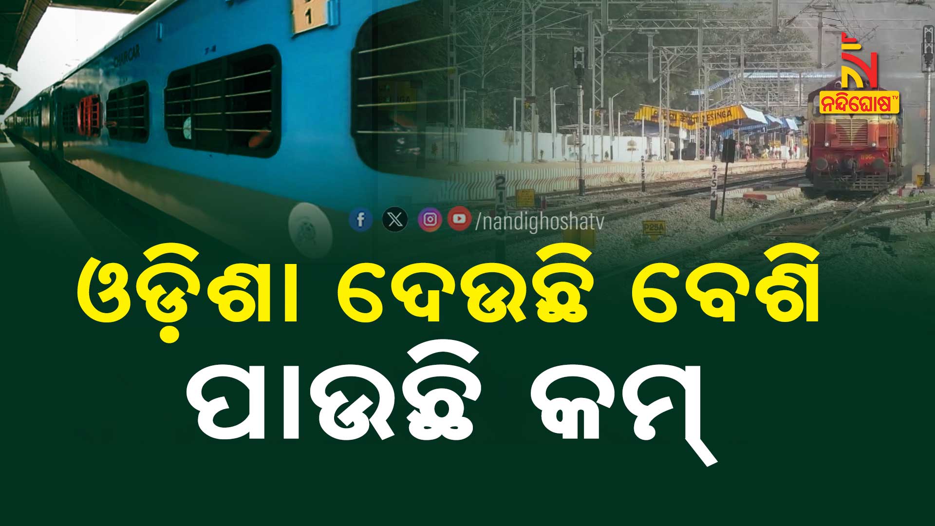 ଅନ୍ୟ ରାଜ୍ୟରେ ଯେପରି ରେଳ ବିକାଶ ହୋଇଛି ସେପରି ବିକାଶ ଓଡ଼ିଶାରେ ହୋଇନି । ଲଗାତାର ଦ୍ବିତୀୟ ଥର ପାଇଁ ରେଳମନ୍ତ୍ରୀ ହୋଇଛନ୍ତି ଅଶ୍ବିନୀ ବୈଷ୍ଣବ । ଆସନ୍ତା ମାସରେ ଆସିବ ରେଳ ବଜେଟ୍ । ଓଡ଼ିଶାରୁ ପ୍ରତିନିଧିତ୍ବ କରୁଥିବା ଅଶ୍ବିନୀଙ୍କ ଉପରେ ଏଥରକ ପୂର୍ଣ୍ଣାଙ୍ଗ ବଜେଟରେ ରାଜ୍ୟବାସୀଙ୍କର ରହିଛି ଅନେକ ଆଶା ।