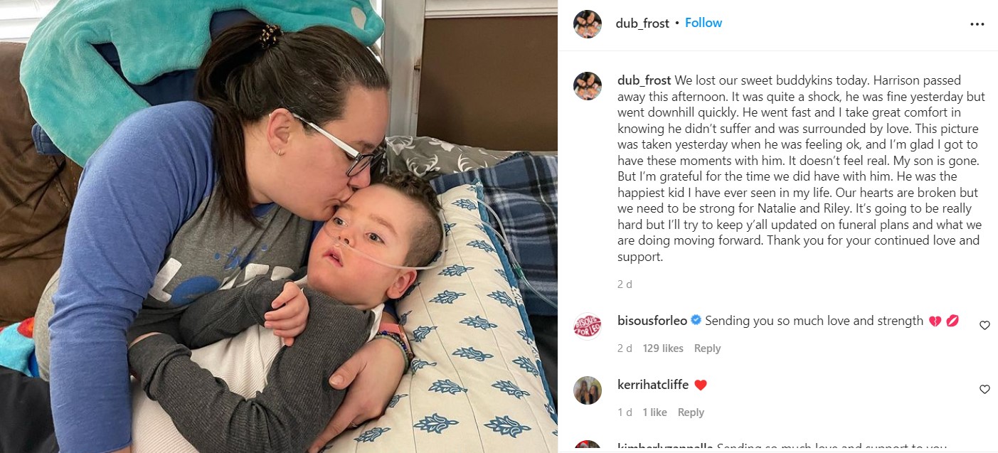 ‘ଦି ସନ୍’ର ରିପୋର୍ଟ ମୁତାବକ ହ୍ୱିଟନିଙ୍କ ଇନଷ୍ଟାଗ୍ରାମରେ ୧୭ ଲକ୍ଷ ଫଲୋଅର ଥିବାବେଳେ ହେରିସନ୍ ନାମକ ତାଙ୍କର ୬ ବର୍ଷୀୟ ପୁଅ ଇନଫୋଟାଇଲ ନ୍ୟୁରୋଏକ୍ସୋନଲ ଡିଷ୍ଟୋଫି ନାମକ ରୋଗରେ ପୀଡ଼ିତ ଥିଲେ । ଅନେକ ଦିନ ଧରି ହେରିସନଙ୍କ ଚିକିତ୍ସା ଚାଲିଥିବା ବେଳେ ତାଙ୍କ ସ୍ୱାସ୍ଥ୍ୟରେ କୌଣସି ଉନ୍ନତି ଦେଖିବାକୁ ମିଳିନଥିଲା । ଏଭଳି ରୋଗର କୌଣସି ଚିକିତ୍ସା ନାହିଁ ବୋଲି ନ୍ୟାସନାଲ ଇନଷ୍ଟୁଚ୍ୟୁଟ୍ ଅଫ୍ ନ୍ୟରୋଲୋଜିକାଲ ଡିଜଅର୍ଡର ସୂଚନା ଦେଇଛି । ହେରିସନ୍ ଆଜି ଅପରାହ୍ନ ୩:୩୫ରେ ପ୍ରାଣ ହରାଇଥିବା ବେଳେ ସମସ୍ତ ପରିବାରକୁ ଖୁବ୍ ଶୀଘ୍ର ଛାଡ଼ି ଚାଲିଯାଇଥିବା କଥା ହ୍ୱିଟନି ଲେଖିଛନ୍ତି ।