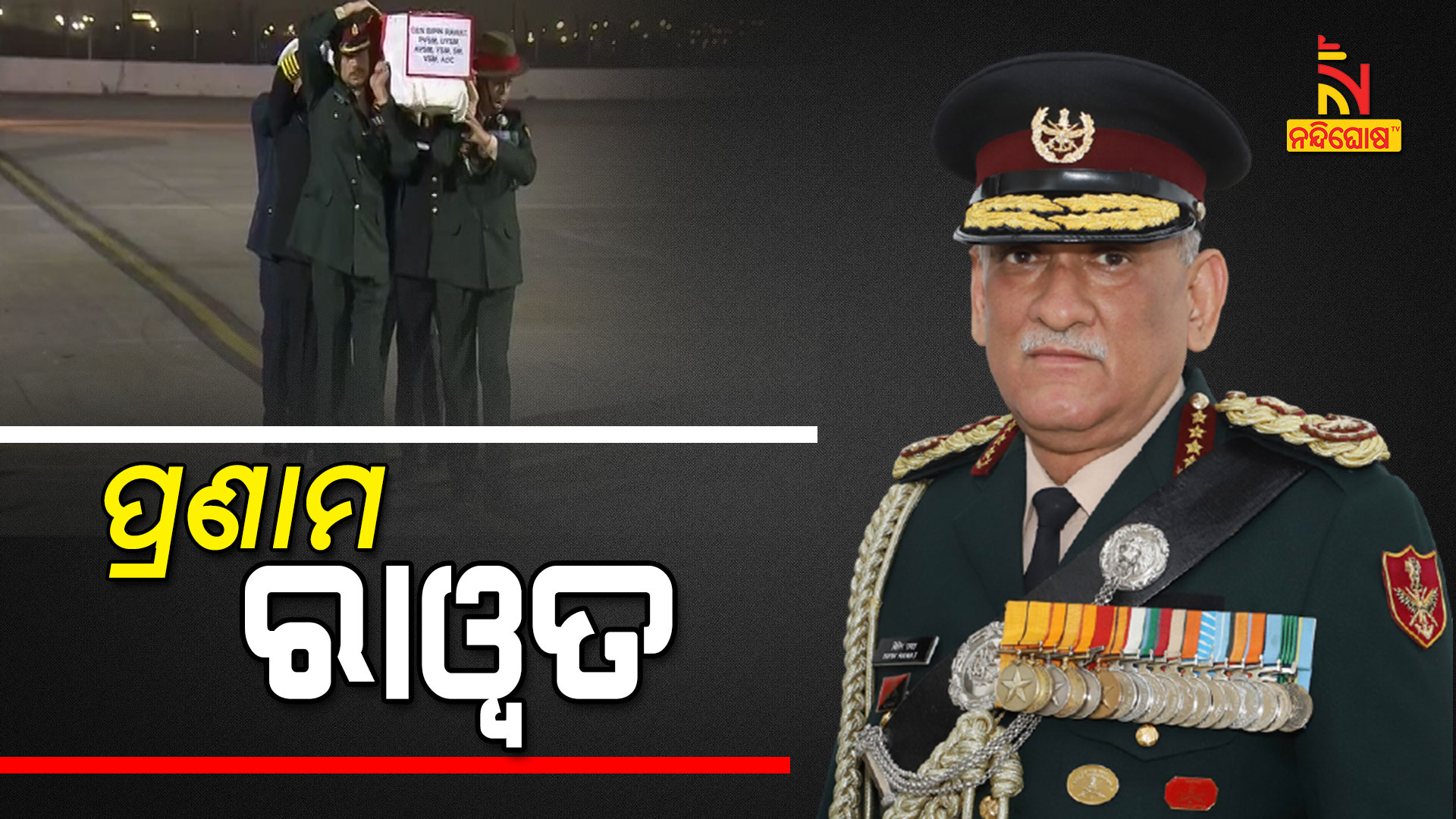 ନୂଆଦିଲ୍ଲୀ: ଦିଲ୍ଲୀ ପାଲମ ଏୟାରବେସରେ ପହଞ୍ଚିଲା ଭାରତର ପ୍ରଥମ ଚିଫ୍ ଅଫ୍ ଡିଫେନ୍ସ ଷ୍ଟାଫ୍ ବିପିନ୍ ରାଓ୍ୱତଙ୍କ ପାର୍ଥିବ ଶରୀର । ସିଡିଏସ ବିପିନ ରାଓ୍ୱତଙ୍କ ସହ ତାଙ୍କ ପତ୍ନୀ ମଧୁଲିକା ରାଓ୍ୱତ ଓ ଏହି ଦୁର୍ଘଟଣାରେ ସହିଦ ହୋଇଥିବା ୧୧ ଜଣ ସେନା ଅଧିକାରୀଙ୍କ ପାର୍ଥିବ ଶରୀର ଦିଲ୍ଲୀରେ ପହଞ୍ଚିଛି । ଅନ୍ତିମ ଦର୍ଶନ କରିବା ପାଇଁ ଦିଲ୍ଲୀର ପାଲମ ଏୟାରବେସରେ ସହିଦ ହୋଇଥିବା ସେନା ଅଧିକାରୀଙ୍କ ପରିବାର ମଧ୍ୟ ପହଞ୍ଚିଛନ୍ତି । ଆଜି ସନ୍ଧ୍ୟା ୮.୩୦ରୁ ବିପିନ ରାଓ୍ୱତଙ୍କୁ ଶ୍ରଦ୍ଧାଞ୍ଜଳି ଦିଆଯିବ । ଏହି ଶ୍ରଦ୍ଧାଞ୍ଜଳି ସମାରୋହରେ ପ୍ରଧାନମନ୍ତ୍ରୀ ନରେନ୍ଦ୍ର ମୋଦିଙ୍କ ସହ ପ୍ରତିରକ୍ଷା ମନ୍ତ୍ରୀ ରାଜନାଥ ସିଂ, NSA ଅଜିତ ଡେଭାଲ ଏବଂ ତିନି ସେନାର ମୁଖ୍ୟ ଏହି ଶ୍ରଦ୍ଧାଞ୍ଜଳି ସମାରୋହରେ ଯୋଗ ଦେବେ । ଶ୍ରଦ୍ଧାଞ୍ଜଳି କାର୍ଯ୍ୟକ୍ରମ ଶେଷ ହେବା ପରେ ପରିବାରଙ୍କୁ ପାର୍ଥିବ ଶରୀର ହସ୍ତାନ୍ତର କରାଯିବ ।