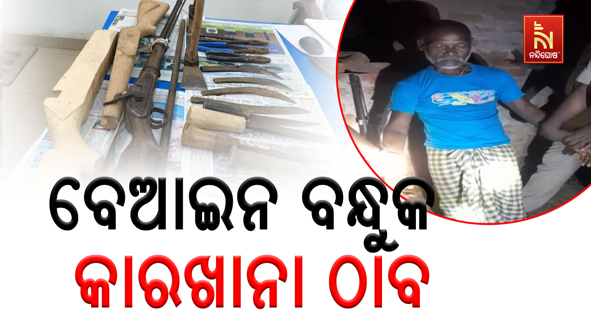 ଅନୁଗୁଳ: ବେଆଇନ ବନ୍ଧୁକ ତିଆରି କାରଖାନା ଠାବ। ଅନୁଗୁଳ ପାଲଲହଡ଼ାରେ ବେଆଇନ ବନ୍ଧୁକ ତିଆରି କାରଖାନା ଠାବ କରିଛି ପୋଲିସ। ବେଆଇନ ଭାବେ ବନ୍ଧୁକ ତିଆରି ଚାଲିଥିବାବେଳେ ପୋଲିସ ମାଡିବସିଥିଲା। ଦେଶୀ ବନ୍ଧୁକ ସହ ଜଣକୁ ଗିରଫ କରିଯାଇଛି। ଗିରଫ ବ୍ୟକ୍ତି ଜଣକ ହେଲେ ପାଳଲହଡା ଉପଖଣ୍ଡ ଖମାର ଥାନା ଅନ୍ତର୍ଗତ ଜାମ୍ବୁଆ ଗାଁର ବଣୁ କିସାନ।