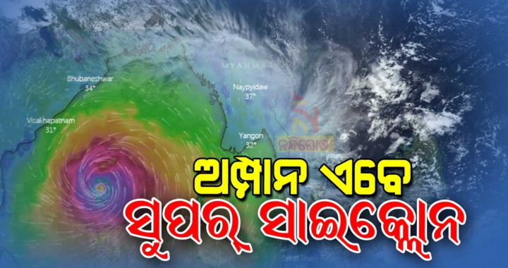 ଭୁବନେଶ୍ୱର: ଦକ୍ଷିଣ ବଙ୍ଗୋପସାଗରରେ ସୃଷ୍ଟ ସାମୁଦ୍ରି ଝଡ଼ ଅମ୍ପାନ ଏବେ ସୁପର ସାଇକ୍ଳୋନ୍ର ଷ୍ଟର୍ମରେ ପରିଣତ ହୋଇଛି । ଅତି ଭୀଷଣ ସାମୁଦ୍ରିକ ଝଡ଼ରୁ ଆଜି ଦିନ ୧୧ଟା୩୦ ମିନିଟରେ ସୁପର ସାଇକ୍ଳୋନର ରୂପ ନେଇଛି । ବର୍ତ୍ତମାନ ପାରାଦୀପଠାରୁ ୭୮୦ କିଲୋମିଟର ଦକ୍ଷିଣରେ ଅବସ୍ଥିତ । The Extremely Severe Cyclonic Storm ‘AMPHAN’ (pronounced as UM-PUN) intensified into Super Cyclonic Storm at 1130 IST of today, the 18th … Continue reading ଉତ୍ତର ଓଡ଼ିଶାରେ ୧୧୦ରୁ ୧୨୦ କି.ମି ବେଗରେ ପବନ ବହିପାରେ: ଛାତ ଘରେ ରହିବାକୁ ପରାମର୍ଶ