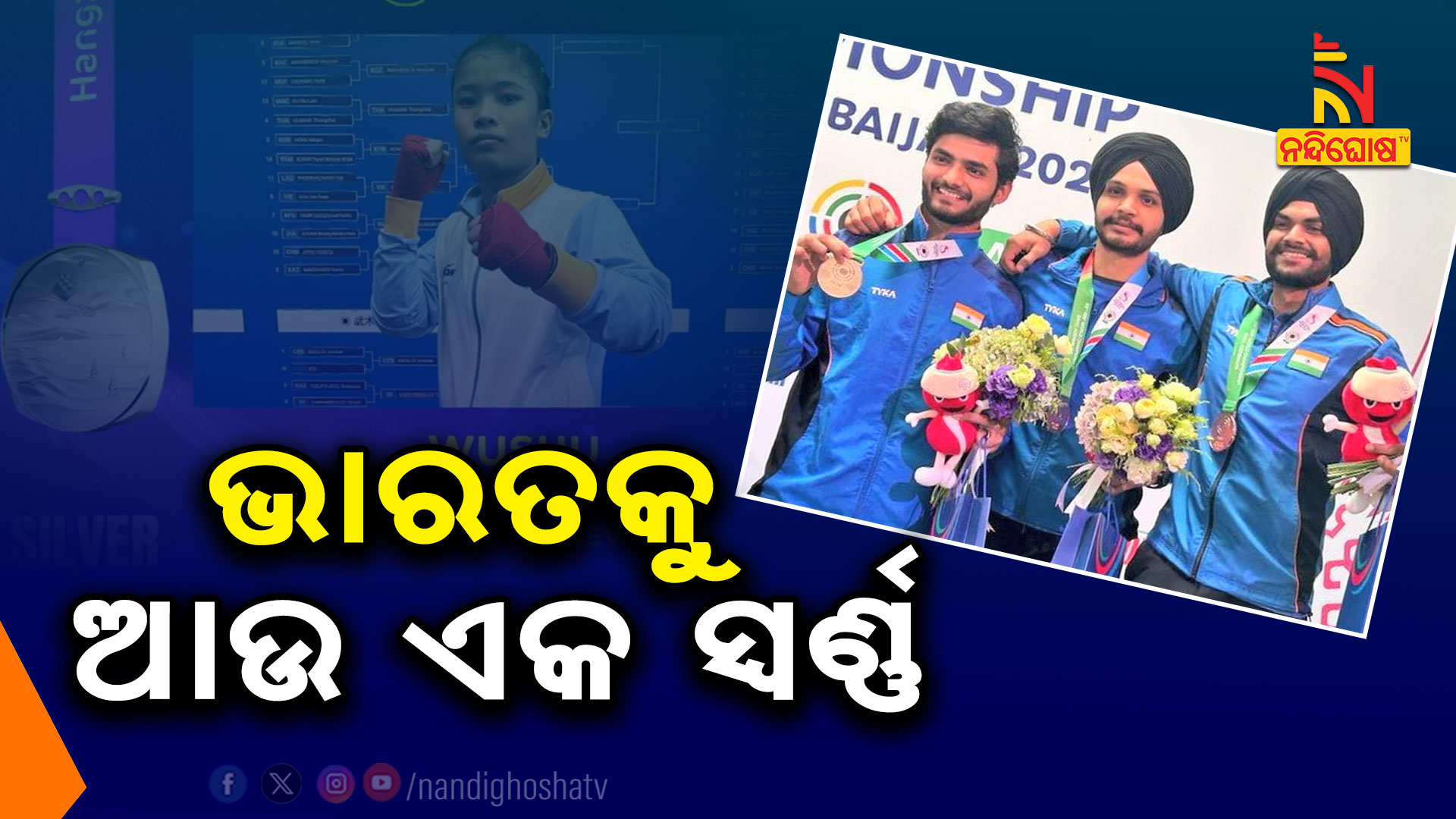 ହାଙ୍ଗଚୌ: ଭାରତକୁ ଆଉ ଏକ ସ୍ବର୍ଣ୍ଣ ପଦକ । ଚୀନରେ ଚାଲିଥିବା ଏସୀୟ କ୍ରୀଡ଼ା ୨୦୨୩ରେ ଭାରତକୁ ଆଉ ଏକ ସ୍ୱର୍ଣ୍ଣ ପଦକ ମିଳିଛି। ସୁଟିଂରେ ପୁଣି ଭାରତକୁ ଏକ ସ୍ୱର୍ଣ୍ଣ ପଦକ ମିଳିଛି। ପୁରୁଷ ୧୦ ମିଟର ଏୟାର ପିସ୍ତଲ ଟିମ୍ ଇଭେଣ୍ଟରେ ସ୍ୱର୍ଣ୍ଣ ପଦକ ହାସଲ କରିଛି ଭାରତ। ଅର୍ଜୁନ ଚିମା, ସରବଜୋତ ସିଂ, ଶିବ ନରୱାଲଙ୍କ ଟିମ ସ୍ୱର୍ଣ୍ଣ ପଦକ ଜିତିଛନ୍ତି । ଏଥିସହ ମହିଳା ୬୦ କେଜି ଉସୁ ବର୍ଗରେ ରୌପ୍ୟ ପଦକ ମିଳିଛି ।