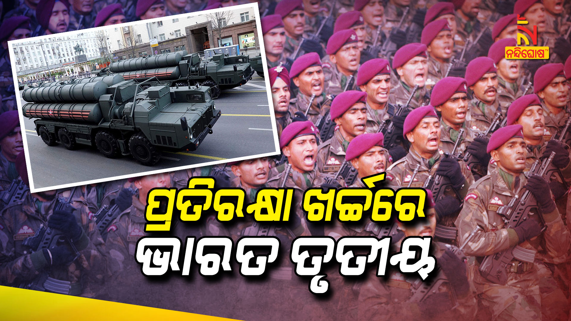 ବିଶ୍ବରେ ପ୍ରତିରକ୍ଷା କ୍ଷେତ୍ରରେ ଅଧିକ ବ୍ୟୟ କରୁଥିବା ପ୍ରଥମ ତିନିଟି ରାଷ୍ଟ୍ରଙ୍କ ମଧ୍ୟରେ ଭାରତ ରହିଛି । ଆମେରିକା, ଚୀନ୍ ପରେ ତୃତୀୟ ସ୍ଥାନରେ ରହିଛି ଭାରତ । ସ୍ବିଡେନର ଷ୍ଟକହୋମ ସ୍ଥିତ ଆନ୍ତର୍ଜାତିକ ଶାନ୍ତି ଗବେଷଣା ପ୍ରତିଷ୍ଠାନ – ଏସଆଇପିଆରଆଇ ପକ୍ଷରୁ ଜାରି ରିପୋର୍ଟରେ ଏହି ସୂଚନା ଦିଆଯାଇଛି ।