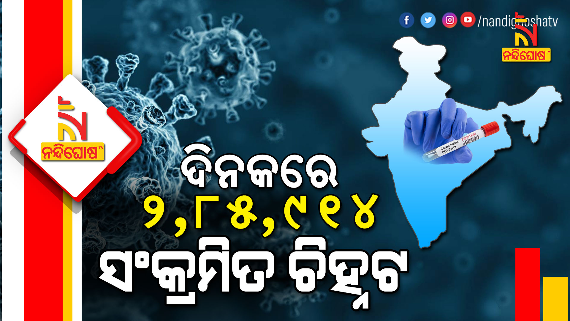ଦେଶରେ ମଙ୍ଗଳବାର ୨ ଲକ୍ଷ ୫୫ ହଜାରରୁ ଅଧିକ କରୋନା ଆକ୍ରାନ୍ତ ଚିହ୍ନଟ ହୋଇଥିଲେ । କିନ୍ତୁ ଆଜି ଏହି ସଂଖ୍ୟାରେ ବୃଦ୍ଧି ପାଇଛି । ଆଜି ଦେଶରେ ୨ ଲକ୍ଷ ୮୫ ହଜାର ୯୧୪ ଜଣ କରୋନା ଆକ୍ରାନ୍ତ ଚିହ୍ନଟ ହୋଇଛନ୍ତି । ଆକ୍ଟିଭ୍ କେସ୍ କଥା ଯଦି କହିବା ତାହାଲେ ବର୍ତ୍ତମାନ ଆକ୍ଟିଭ୍ କେସ୍ ସଂଖ୍ୟା ୨୨ ଲକ୍ଷ ୨୩ ହଜାର ୧୦୮ ରହିଛି । ସେହିପରି ଭାବରେ ୨୪ ଘଣ୍ଟାରେ ଦେଶରେ ୨ ଲକ୍ଷ ୬୭ ହଜାର ୭୫୩ ଜଣ ଆକ୍ରାନ୍ତ କରୋନାରୁ ସୁସ୍ଥ ହୋଇଛନ୍ତି ।