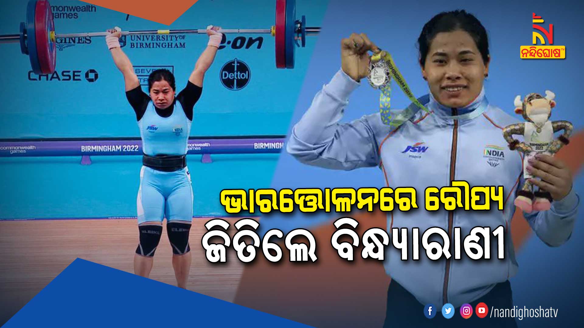 ବର୍ମିଂହାମ: ରାଜ୍ୟଗୋଷ୍ଠୀ କ୍ରୀଡାରେ ଭାରତକୁ ଚତୁର୍ଥ ପଦକ ମିଳିଛି । ଭାରତ୍ତୋଳକ ବିନ୍ଦ୍ୟାରାଣୀ ଦେବୀ ରୌପ୍ୟ ପଦକ ଜିତିଛନ୍ତି । ୫୫କେଜି ମହିଳା ବର୍ଗରେ ସେ ଏହି ପଦକ ଜିତିଛନ୍ତି । ସ୍ନାଚରେ ବିନ୍ଦ୍ୟାରାଣୀ ୮୬ କେଜି ଭାର ଉଠାଇଥିଲେ, ସେହିପରି କ୍ଲିନ ଆଣ୍ଡ ଜର୍କରେ ୧୧୬ କେଜି ଓଜନ ଉଠାଇଥିଲେ । ମୋଟ ୨୦୨ କେଜି ଓଜନ ଉଠାଇ ରୌପ୍ୟ ପଦକ ନିଜ ନାଁରେ କରିଛନ୍ତି । ଏଥିସହ ଭାରତର ମୋଟ ମେଡାଲ ସଂଖ୍ୟା ୪କୁ ବୃଦ୍ଧି ପାଇଛି ।