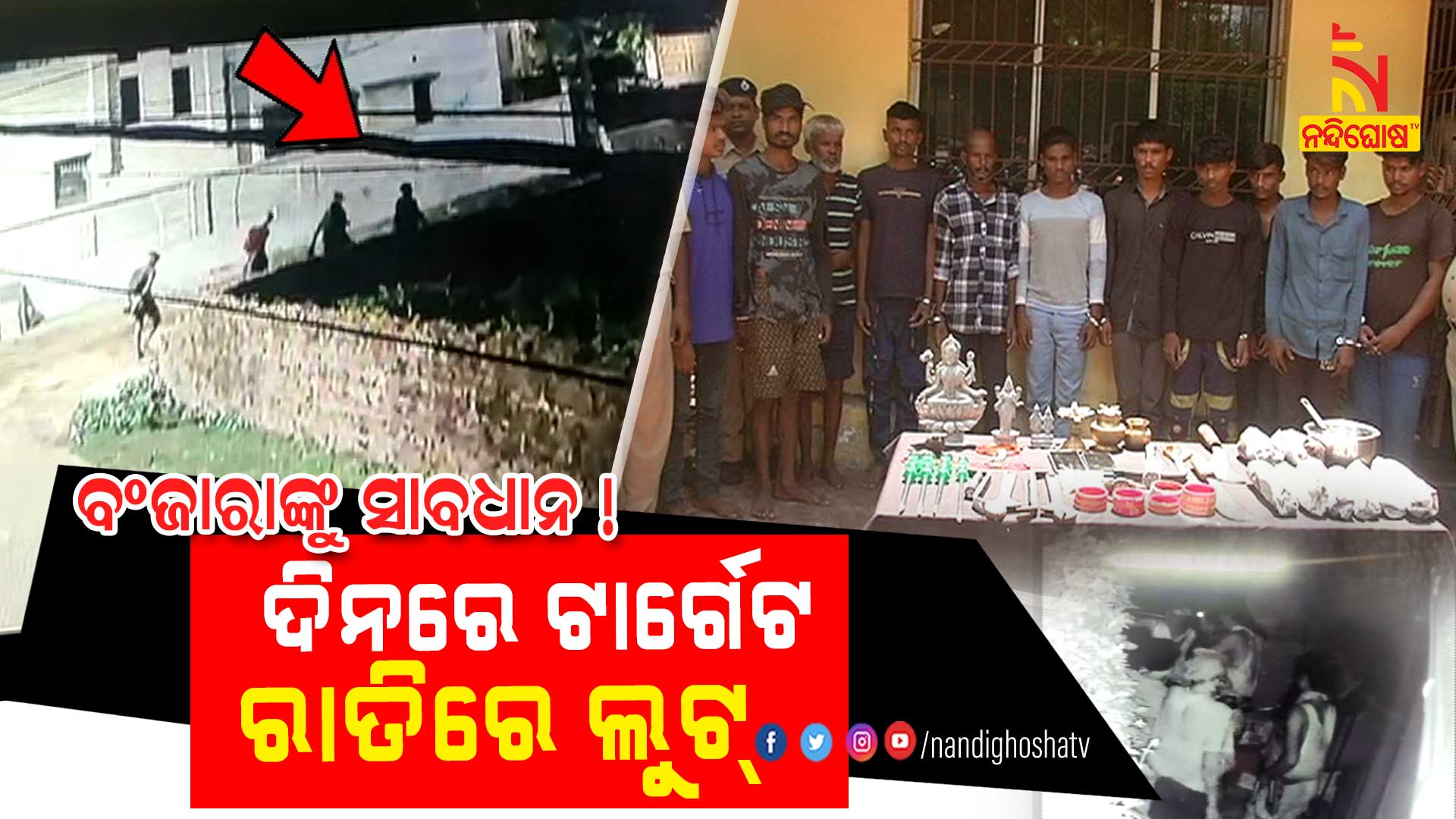 ଭୁବନେଶ୍ୱର: ଭୁବନେଶ୍ବରରେ ମାତିଛନ୍ତି ଆନ୍ତଃରାଜ୍ୟ ଲୁଟେରା ଗ୍ୟାଙ୍ଗ । ରାଜଧାନୀରେ ଟ୍ରାଫିକ ପୋଷ୍ଟରେ ବଂଜାରାଙ୍କୁ ଦେଖିଲେ ହୋଇଯାଆନ୍ତୁ ସାବଧାନ । ସ୍ତ୍ରୀ ଦିନରେ ଛୁଆ ଧରି ଟ୍ରାଫିକରେ ବୁଲୁଥିବାବେଳେ ଲୁଟ୍ ପାଇଁ ଟାର୍ଗେଟ କରୁଛି ସ୍ବାମୀ । ଆନ୍ତଃରାଜ୍ୟ ଲୁଟେରା ଗ୍ୟାଙ୍ଗକୁ ଗିରଫ କରିଛି କମିଶନରେଟ ପୋଲିସର ସ୍ପେଶାଲ ସ୍କ୍ବାଡ୍ । ୧୧ ଜଣିଆ ଲୁଟେରା ଗ୍ୟାଙ୍ଗକୁ ଗିରଫ କରାଯାଇଛି । ସେମାନଙ୍କ ନାଁରେ ଧଉଳି, ବଡ଼ଗଡ଼, ଲକ୍ଷ୍ମୀସାଗର, ଏୟାରପୋର୍ଟ,ଏୟାରଫିଲଡ଼, ତମାଣ୍ଡୋ ଥାନାରେ ୧୬ଟି ମାମଲା ରହିଛି । ଅଭିଯୁକ୍ତଙ୍କ ନିକଟରୁ ସୁନା, ରୁପା, ଅଳଙ୍କାର, ମୂର୍ତ୍ତି, ହତିଆର ଜବତ କରାଯାଇଛି ।