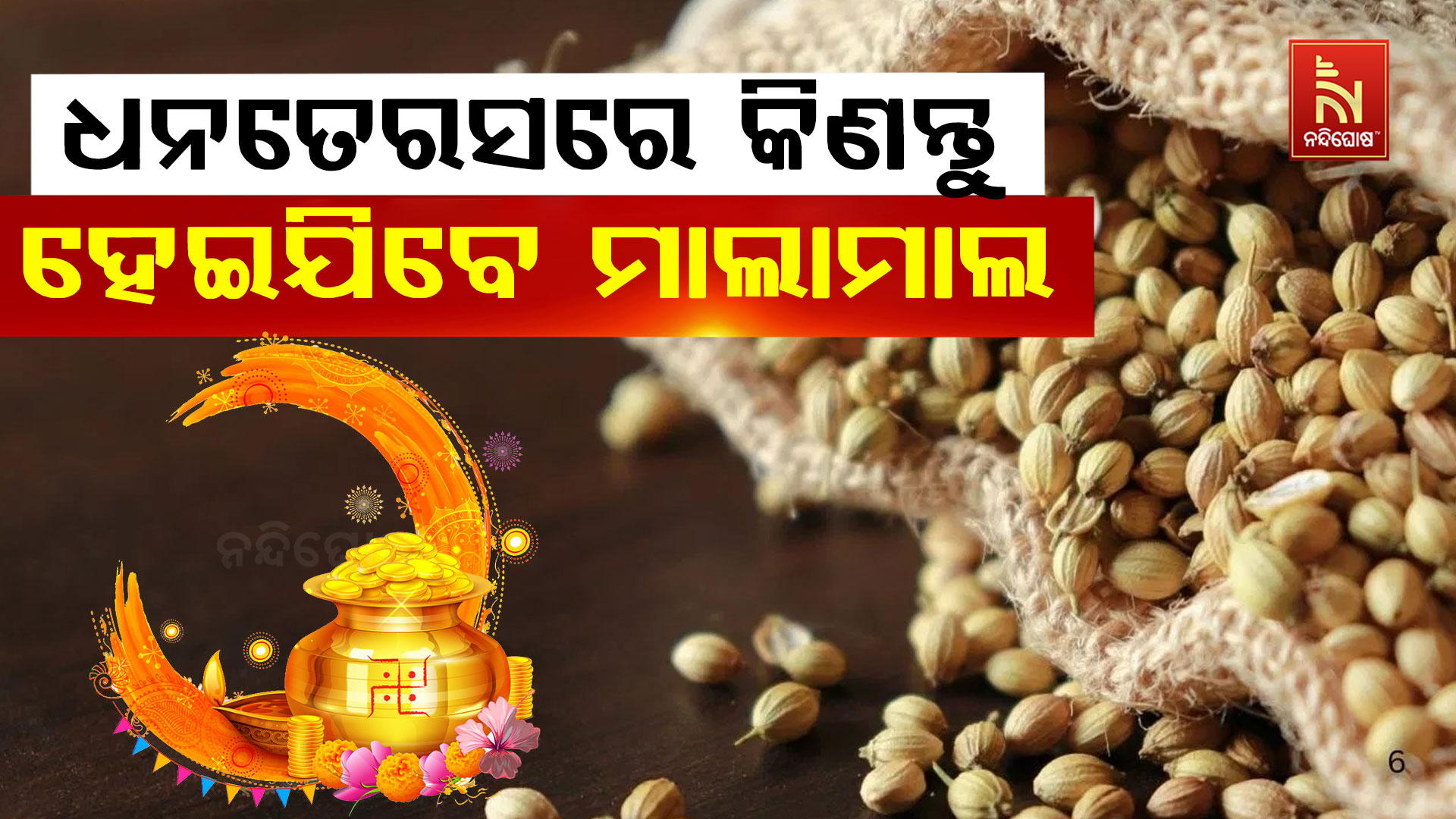 ଧନିଆକୁ ଧନ ଏବଂ ବୃଦ୍ଧିର ପ୍ରତୀକ ଭାବରେ ବିବେଚନା କରାଯାଏ। ଧନତେରସରେ ଧନିଆ ବିହନ କିଣିବା ବହୁତ ଶୁଭ ବୋଲି ବିବେଚନା କରାଯାଏ। ପୂଜା ସମୟରେ ଦେବୀ ଲକ୍ଷ୍ମୀଙ୍କୁ କିଛି ଧନିଆ ଅର୍ପଣ କରନ୍ତୁ ଏବଂ ତା’ପରେ ଏକ ପାତ୍ରରେ କିଛି ବିହନ ବୁଣନ୍ତୁ। ଯଦି ଗଛଟି ଭଲ ଭାବରେ ବଢ଼େ, ତେବେ ଏହା ଘରେ ସ୍ଥାୟୀ ସମୃଦ୍ଧି ଏବଂ ସୁଖ ଆଣିଥାଏ ବୋଲି କୁହାଯାଏ। ଧନତେରସରେ ଘରକୁ ହଳଦୀ ଆଣିବା ମଧ୍ୟ ଲାଭଦାୟକ। ଧନତେରସରେ କେସର କିଣିବା ଧାର୍ମିକ ଦୃଷ୍ଟିରୁ ମଧ୍ୟ ଲାଭଦାୟକ ବୋଲି ବିବେଚନା କରାଯାଏ