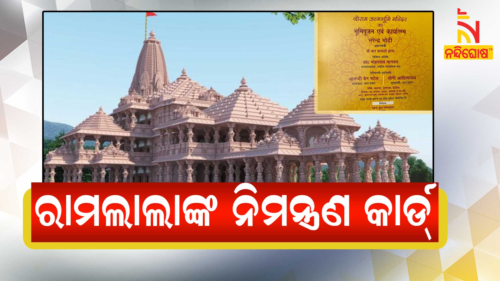 ଶ୍ରୀରାମ ଜନ୍ମଭୂମି ତୀର୍ଥ କ୍ଷେତ୍ର ଟ୍ରଷ୍ଟ ଅଧ୍ୟକ୍ଷ ମହନ୍ତ ନୃତ୍ୟ ଗୋପାଳ ଦାସଙ୍କ ତରଫରୁ ପଠାଯାଇଥିବା ଏହି ଆମନ୍ତ୍ରଣ ପତ୍ରରେ ଲେଖା ଯାଇଛି ଯେ, ଶ୍ରୀରାମ ଜନ୍ମଭୂମି ମନ୍ଦିରର ଭୁମିପୂଜା ପ୍ରଧାନମନ୍ତ୍ରୀ ନରେନ୍ଦ୍ର ମୋଦିଙ୍କ ଦ୍ୱାରା ହେବ । ବିଶିଷ୍ଟ ଅତିଥି ଭାବେ ରାଷ୍ଟ୍ରୀୟ ସ୍ୱଂୟସେବକ ସଂଘ ମୁଖ୍ୟ ମୋହନ ଭାଗବତ ଯୋଗ ଦେବେ ।