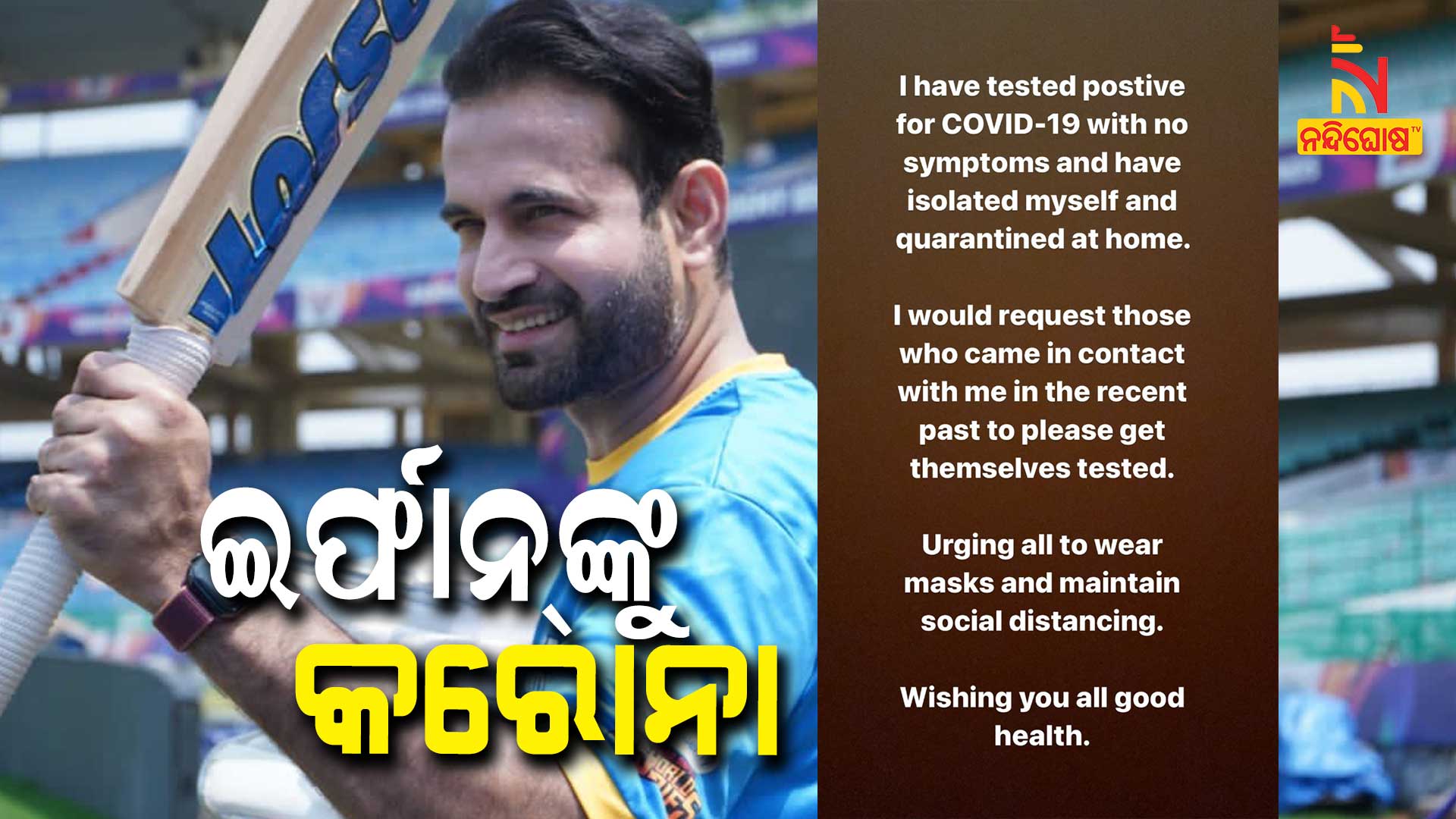 ଭୁବନେଶ୍ୱର: ଦେଶରେ କରୋନା ଦ୍ବିତୀୟ ଲହରୀ ଜାରି ରହିଛି । ପ୍ରତିଦିନ ୬୦ହଜାରରୁ ଅଧିକ ସଂକ୍ରମିତ ଚିହ୍ନଟ ହୋଉଛନ୍ତି । ଏହାରିଭିତରେ କ୍ରିକେଟରଙ୍କୁ ହେଉଛି କରୋନା । ସଚିନ , ୟୁସୁଫ୍ ଓ ବଦ୍ରିନାଥଙ୍କ ପରେ ଇରଫାନ ପଠାନ ହୋଇଛନ୍ତି କରୋନା ପଜିଟିଭ । ପୂର୍ବରୁ ବଡ଼ଭାଇ ୟୁସୁଫ୍ ପଠାନ୍ କରୋନା ଆକ୍ରାନ୍ତ ହୋଇଥିଲେ । ଏବେ ଟିମ୍ ଇଣ୍ଡିଆର ପୂର୍ବତନ ଅଲ୍ରାଉଣ୍ଡର ହୋଇଛନ୍ତି କରୋନା ଆକ୍ରାନ୍ତ । ଇରଫାନ ସୋସିଆଲ ମିଡିଆରେ ନିଜେ ଏହି ସୂଚନା ଦେଇଛନ୍ତି । କୌଣସି ଲକ୍ଷଣ ନଥିବା ସତ୍ବେ ସେ କରୋନା ପଜିଟିଭ ଆସିଥିବା ଟ୍ବିଟରେ ଉଲ୍ଲେଖ କରିଛନ୍ତି । ହୋମ୍ ଆଇସୋଲେସନରେ ଅଛନ୍ତି ଇରଫାନ୍ । କିଛି ଦିନ ମଧ୍ୟରେ ତାଙ୍କ ସମ୍ପର୍କରେ ଆସିଥିବା ବ୍ୟକ୍ତିଙ୍କୁ କରୋନା ଟେଷ୍ଟ କରିବାକୁ ସେ ଅନୁରୋଧ କରିଛନ୍ତି । ଏହାସହ ମାସ୍କ ଓ ସୋସିଆଲ ଡିଷ୍ଟାନ୍ସ ନିୟମ ପାଳନ କରିବାକୁ ସେ ଟ୍ବିଟରେ ଲୋକଙ୍କୁ ସଚେତନ କରାଇଛନ୍ତି ।