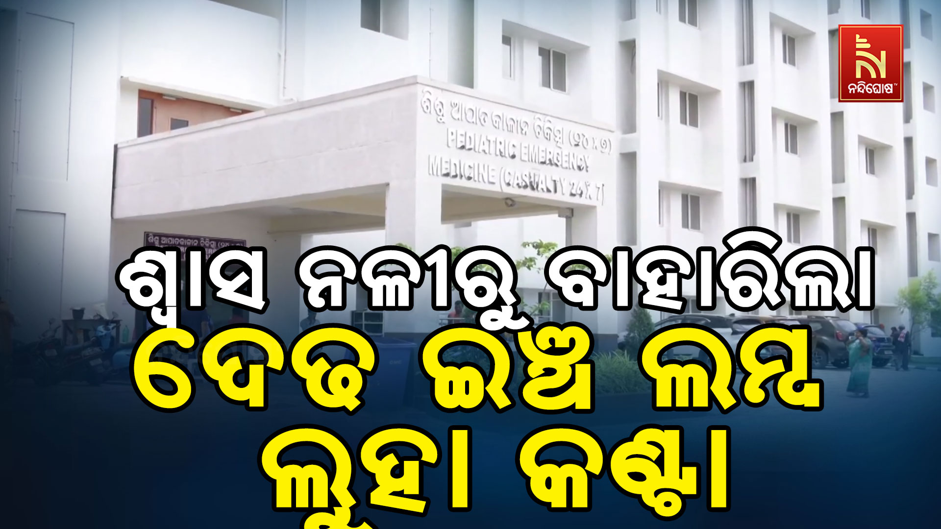 କଟକ ଶିଶୁଭବନରେ ବିନା ଅସ୍ତ୍ରୋପଚାରରେ ବ୍ରୋଙ୍କୋସ୍କୋପି ପଦ୍ଧତିରେ ଏକ ଶିଶୁର ଶ୍ବାସ ନଳୀରୁ ଦେଢ ଇଞ୍ଚ ଲମ୍ବ ଏକ ଲୁହା କଣ୍ଟା ବାହାର କରାଯାଇଛି। ଯାଜପୁର ଜିଲ୍ଲାର କାଳିଆପାଣି ଅଂଚଳର ଏକ ୬ ବର୍ଷର ଶିଶୁ ଖେଳୁଥିବା ବେଳେ ରାସ୍ତାରେ ପଡିଥିବା ଏକ କଳଙ୍କି କଣ୍ଟା ଢୋକିଦେଇଥିଲା। ପରେ ବାରମ୍ବାର କାଶ ହେବାରୁ ତାକୁ ଶିଶୁଭବନରେ ଭର୍ତ୍ତି କରାଯାଇଥିଲା। ପରୀକ୍ଷାରୁ ଶ୍ବାସ ନଳୀରେ କଣ୍ଟା ଥିବା ଜଣାପଡିଥିଲା। ଫଳରେ ବ୍ରୋଙ୍କୋସ୍କୋପିର ସହାୟତାରେ କଣ୍ଟା କଢ଼ାଯାଇଛି। ଶିଶୁଟି ଏବେ ସୁସ୍ଥ ଅଛି।