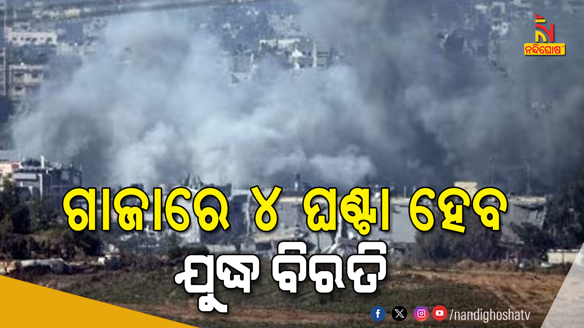ନନ୍ଦିଘୋଷ ବ୍ୟୁରୋ : ଗାଜାରେ ଦୈନିକ ୪ ଘଣ୍ଟା ହେବ ଯୁଦ୍ଧ ବିରତି । ଯୁଦ୍ଧରେ ବିରାମ ପାଇଁ ସହମତି ପ୍ରକାଶ କରିଛି ଇସ୍ରାଏଲ । ଉତ୍ତର ଗାଜାରୁ ଦକ୍ଷିଣ ଗାଜାକୁ ସୁରକ୍ଷିତ ପଳାୟନ ପାଇଁ ୪ ଘଣ୍ଟା ଯୁଦ୍ଧରେ ବିରାମ ଲଗାଯିବ । ଏହି ସମୟରେ ଗାଜାରେ ମାନବୀୟ ସହାୟତାକୁ ତ୍ବରାନ୍ବିତ କରାଯିବ । ଏବେ ଗାଜାକୁ ଘେରାବନ୍ଦୀ କରି ଘମାଘୋଟ ଆକ୍ରମଣ ଜାରି ରଖିଛି ଇସ୍ରାଏଲ । ସେପଟେ ଲେବାନନରେ ଇସ୍ରାଏଲ ଏୟାରଷ୍ଟ୍ରାଇକ କରିଛି । ହେଜବୋଲ୍ଲା ଆତଙ୍କବାଦୀ ଆଡ୍ଡା ଉପରେ ଇସ୍ରାଏଲ ହମଲା ଜାରି ରଖିଛି ।