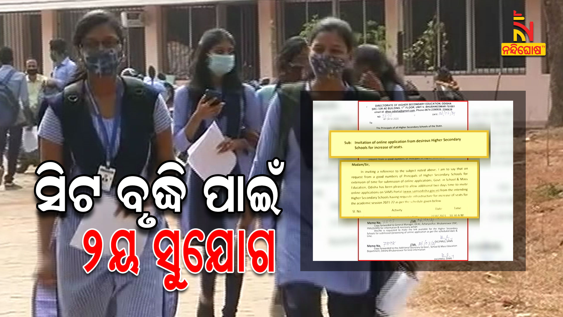ଏ ନେଇ ଉଚ୍ଚଶିକ୍ଷା ନିର୍ଦେଶାଳୟ ପକ୍ଷରୁ ସମସ୍ତ ଜୁନିଅର କଲେଜ ଅଧ୍ୟକ୍ଷଙ୍କୁ ପତ୍ର ଲେଖାଯାଇଛି । ପୂର୍ବରୁ ଏହା ଜୁଲାଇ 14ରୁ 28 ଯାଏ ଥିଲା । ଛାତ୍ରଛାତ୍ରୀ ଅଧିକ ମାର୍କ ରଖିଥିବାରୁ ଯେପରି ଭଲ କଲେଜରେ ପଢିବା ସୁଯୋଗରୁ ବଞ୍ଚିତ ନ ରୁହନ୍ତୁ, ସେ ଦିଗରେ ସିଟ ବୃଦ୍ଧି ନିଷ୍ପତ୍ତି ନେଇଥିଲେ ରାଜ୍ୟ ସରକାର ।