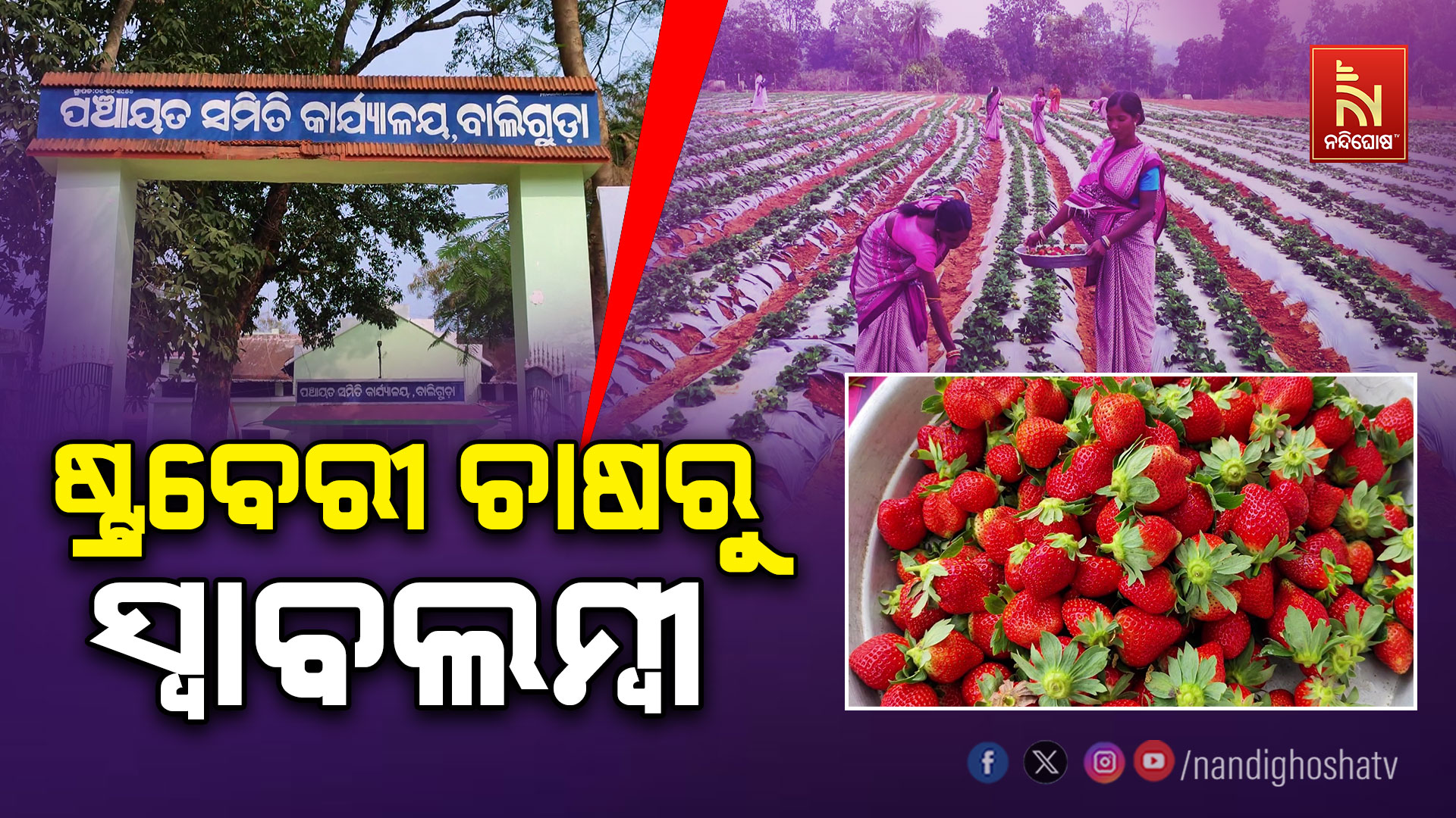କନ୍ଧମାଳ: ଷ୍ଟ୍ରବେରୀ ଦେଖାଇଛି ଜୀବନ ଜିଇଁବାର ବାଟ । ମିଶନ ଶକ୍ତି ସହାୟତାରେ ବୃନ୍ଦାବତୀ ସ୍ବୟଂ ସହାୟିକା ଗୋଷ୍ଠୀର ଆଦିବାସୀ ମହିଳା ଷ୍ଟ୍ରବେରୀ ଚାଷ କରି ଲାଭାନ୍ବିତ ହେବା ସହ ନିଜେ ନିଜକୁ ସ୍ବାବଲମ୍ବୀ କରିବାରେ ସକ୍ଷମ ହୋଇଛନ୍ତି ଏବଂ ରାଜ୍ୟ ସରକାରଙ୍କ ସହଯୋଗକୁ ସାଧୁବାଦ ଜଣାଇଛନ୍ତି ।