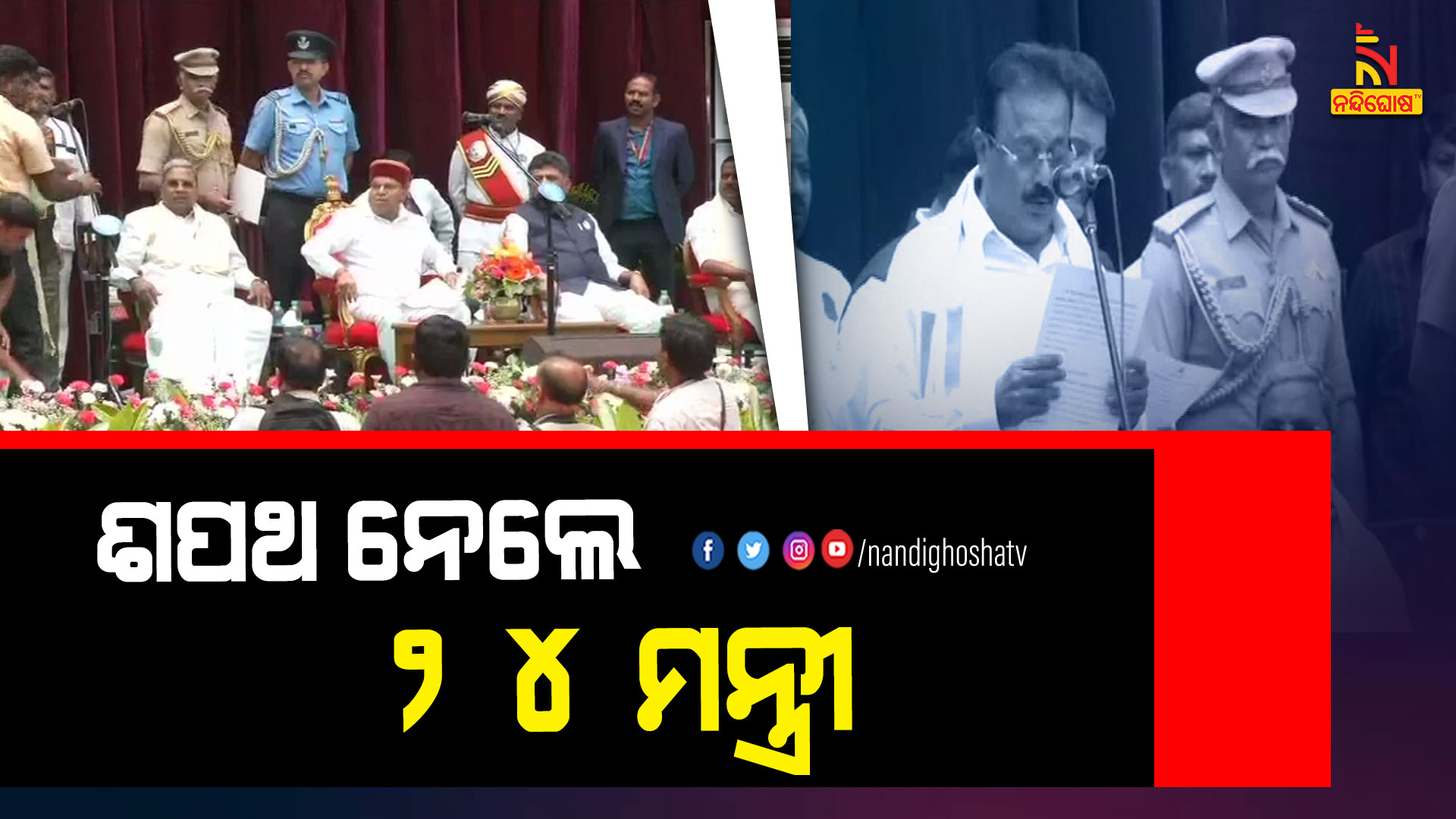 ବେଙ୍ଗାଲୁରୁ: ସମ୍ପ୍ରସାରିତ ହେଲା କର୍ଣ୍ଣାଟକ ମନ୍ତ୍ରିମଣ୍ଡଳ । ସାମିଲ ହେଲେ ୨୪ ନୂଆ ମନ୍ତ୍ରୀ । ଶପଥ ନେଇଥିବା ମନ୍ତ୍ରୀଙ୍କ ମଧ୍ୟରେ ଅଛନ୍ତି ଦିନେଶ ଗୁଣ୍ଡୁରାଓ, କ୍ରିଷ୍ଣା ବାଇରେ ଗୌଡା, ଈଶ୍ବର ଖାଣ୍ଡାରେ, ରହିମ ଖାନ, ସନ୍ତୋଷ ଲାଡ, କେ.ଏନ. ରାଜାନ୍ନା, କେ. ଭେଙ୍କଟେଶ, ଏଚ ସି ମହାଦେବାପ୍ପା, ବାଇରଥି ସୁରେଶ, ଶିବରାଜ ତାଙ୍ଗାଡି, ଆର.ବି. ତିମ୍ପୁର, ବି. ନାଗେନ୍ଦ୍ର, ଲକ୍ଷ୍ମୀ ହେବଲକର, ମଧୁ ବାଙ୍ଗରାପ୍ପା. ଡି. ସୁଧାକର ପ୍ରମୁଖ । ନୂଆ ମନ୍ତ୍ରୀଙ୍କ ମଧ୍ୟରେ ରହିଛନ୍ତି ୯ ଜଣ ନୂଆ ମୁହଁ ଓ ଜଣେ ମହିଳା ।