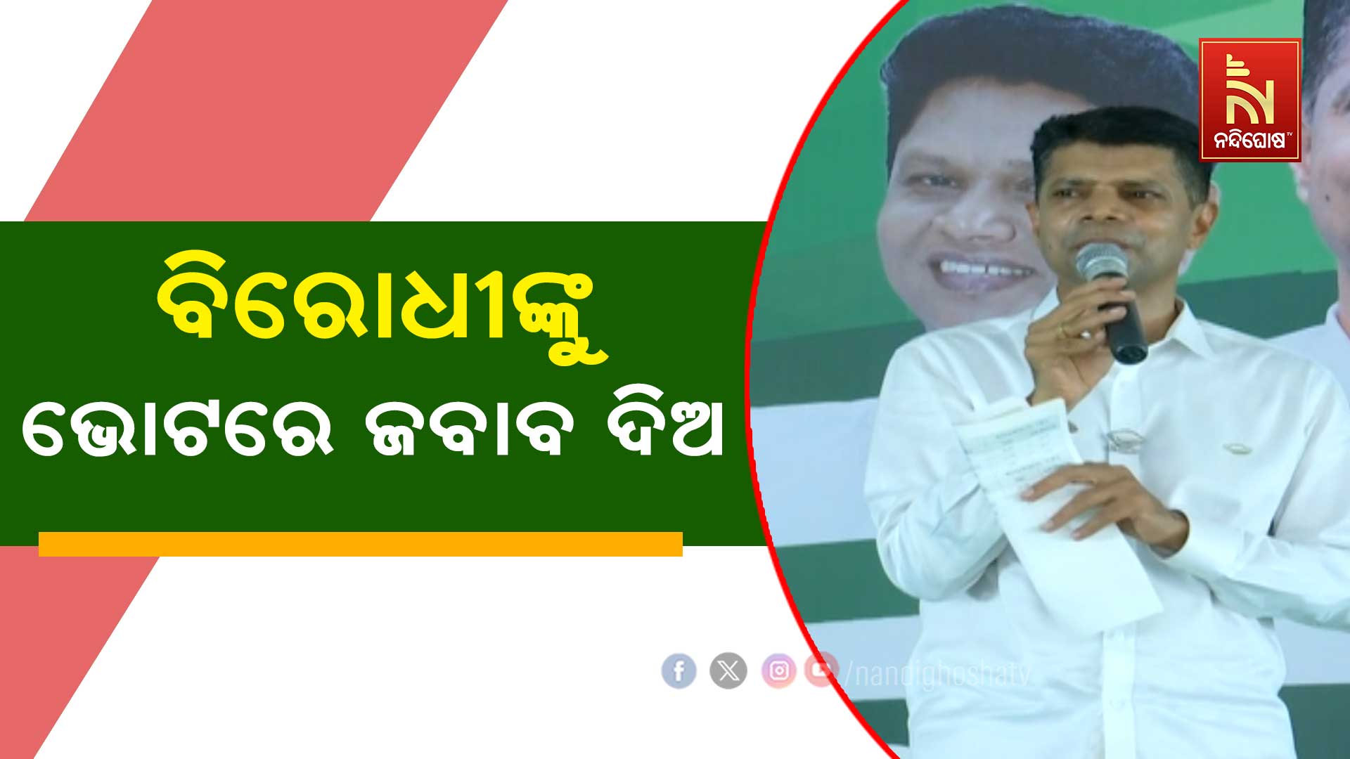 ଭଞ୍ଜନଗର: ମୁଖ୍ୟମନ୍ତ୍ରୀ ନବୀନ ପଟ୍ଟନାୟକଙ୍କ ପ୍ରତି ଜନସମର୍ଥନ ଦେଖି ବିରୋଧୀଙ୍କ ନିଦ ହଜିଗଲାଣି । ସେମାନେ କେବଳ ଅପପ୍ରଚାରରେ ମାତିଛନ୍ତି । ମିଶନ ଶକ୍ତି ଓ ବିଏସକେୱାଇ ଭଳି ଯୋଜନାକୁ ବନ୍ଦ କରିବାକୁ ଚକ୍ରାନ୍ତ କରୁଛନ୍ତି । ସେମାନଙ୍କ ବିକାଶକୁ ବିରୋଧ କରୁଛନ୍ତି । ବିରୋଧୀଙ୍କୁ ଭୋଟରେ ଜବାବ ଦେବାକୁ ଭଞ୍ଜଜନଗରରେ ବିଜେଡି ପ୍ରଚାର ସମାବେଶରେ ଯୋଗଦେଇ ଭୋଟରଙ୍କୁ ଅପିଲ କରିଛନ୍ତି ବିଜେଡିର ବରିଷ୍ଠ ନେତା କାର୍ତ୍ତିକ ପାଣ୍ଡିଆନ ।